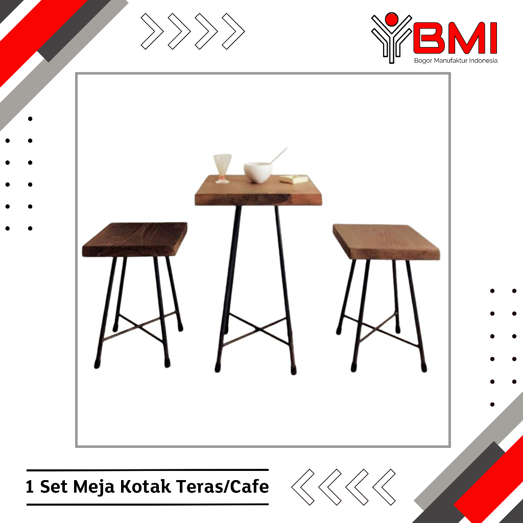 1 Set Meja Kursi Kotak Cafe - Furniture Semi Outdoor - 1 Meja 2 Kursi