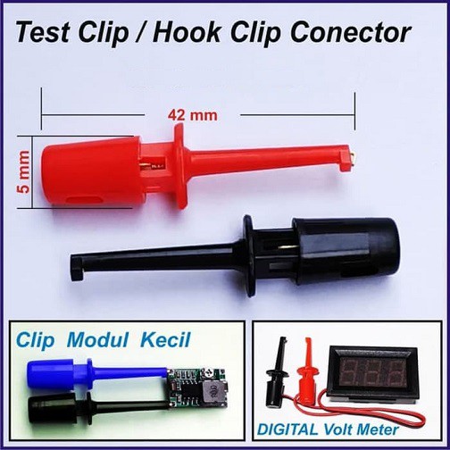 1 Set Merah Hitam Test Clip Clips / Hook Clip Connector / Test Probe Konektor IC single Jepit