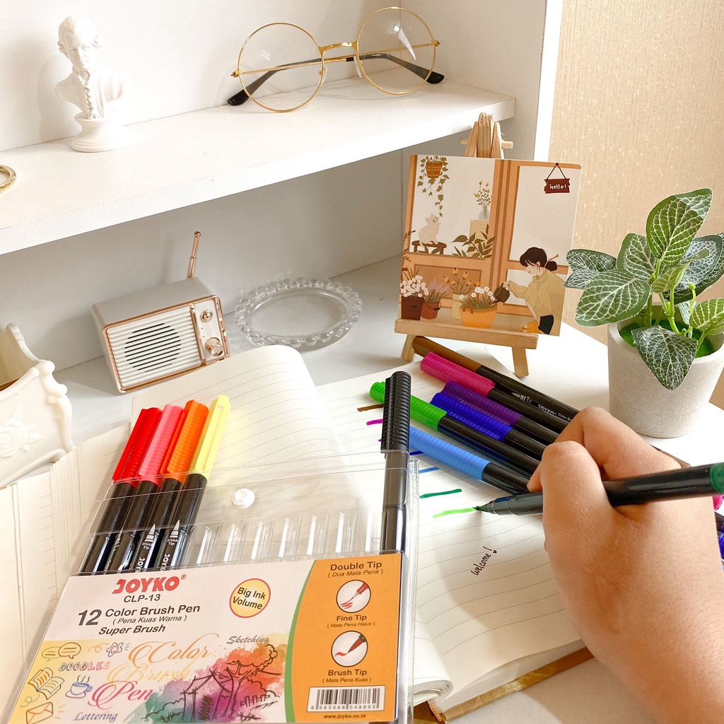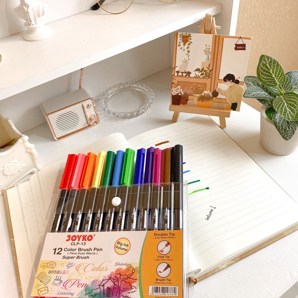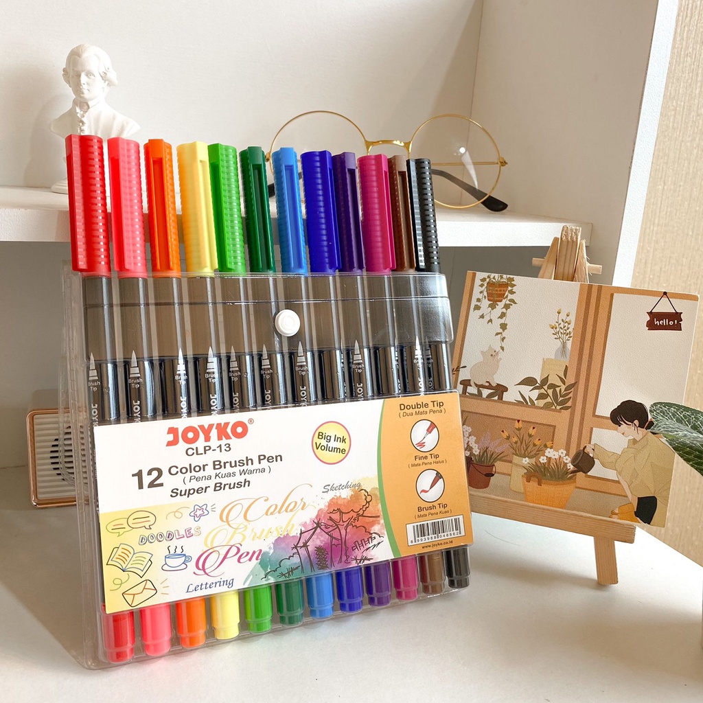 1 Set Pen Joyko Color Brush Pen CLP13, Pena Kuas Warna Joyko Original CLP-13 / CLP13 12 Pcs 2 in 1 Coloring Sketch Doodle Fine Brush Tip Spidol Warna Harga
