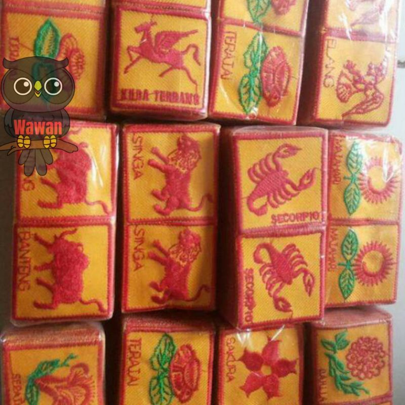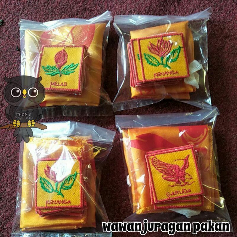 1 bendera regu dan10 biji bed bordir regu ( putra gambar hewan dan putri gambar bunga)