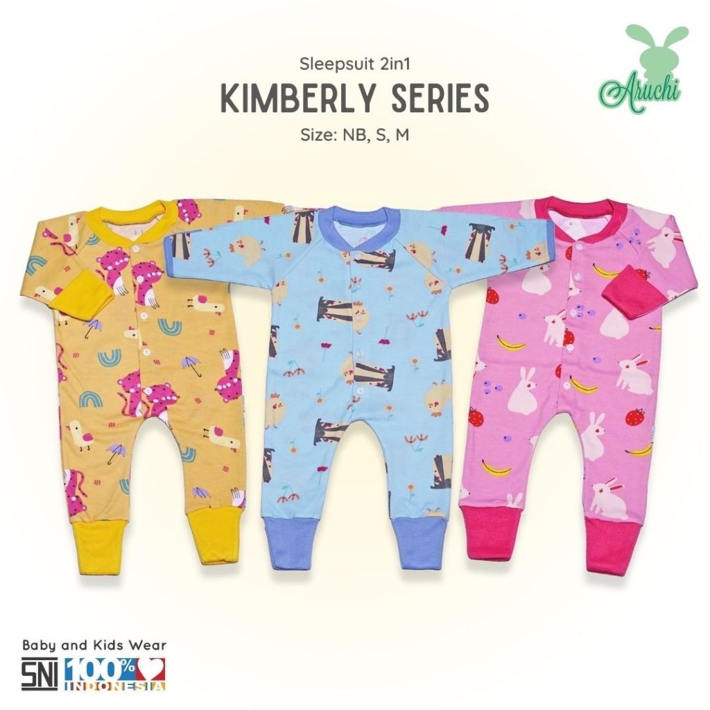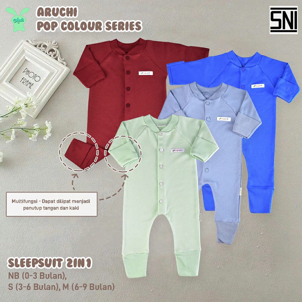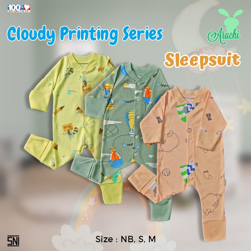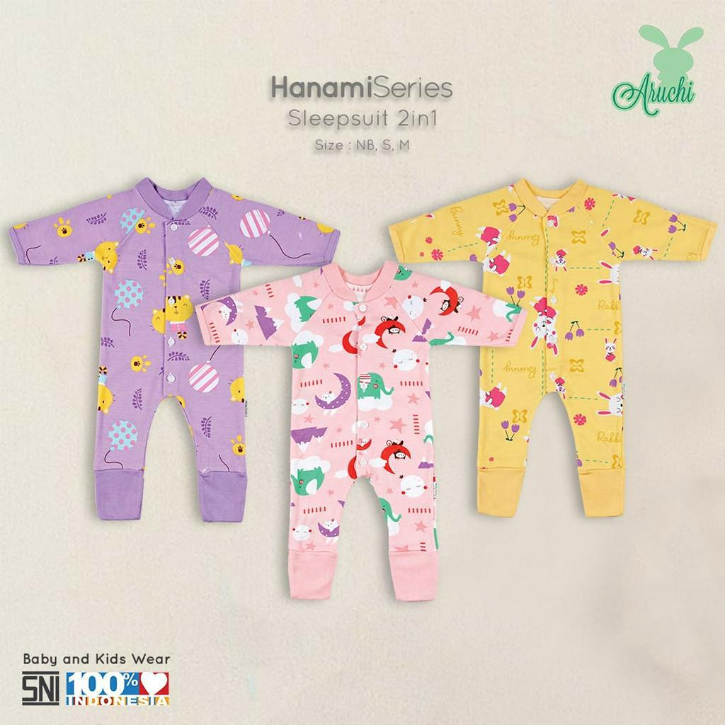 BANYAK MOTIF 1 pcs ARUCHI Baju Sleepsuit ARUCHI TWINKLE / BIANCA / KIMBERLY / DAFFIN / COOPER / DAISY / HANAMI / CLOUDY / HUNTER SERIES Kodok Panjang Bayi Baby 2 IN 1 baju anak
