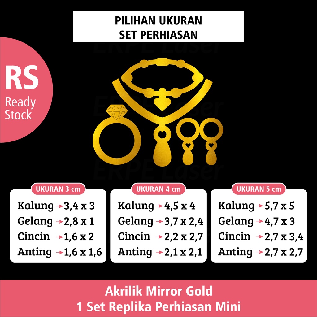 1 set REPLIKA PERHIASAN MINI Akrilik Mirror Gold/Silver/Rose Gold dekorasi mahar