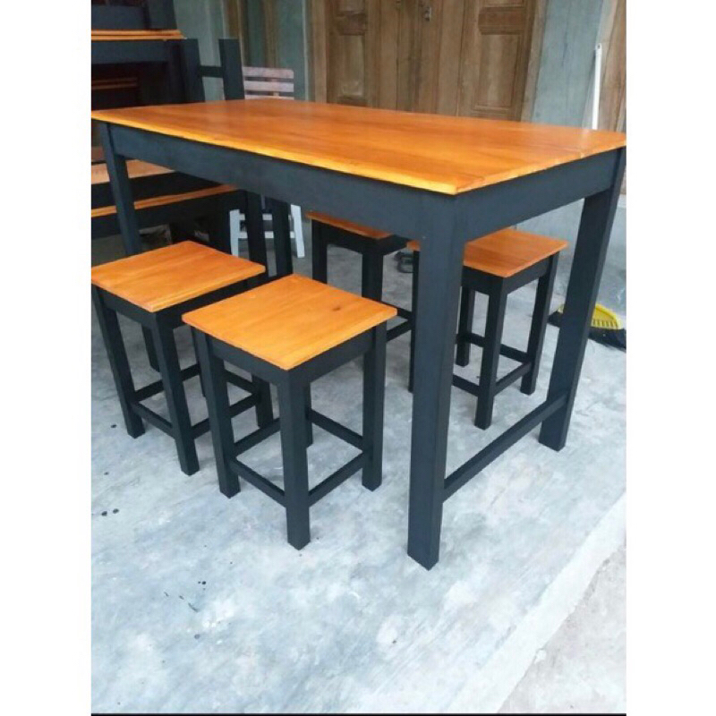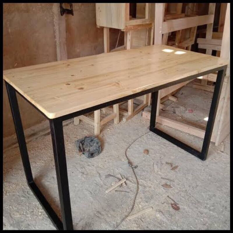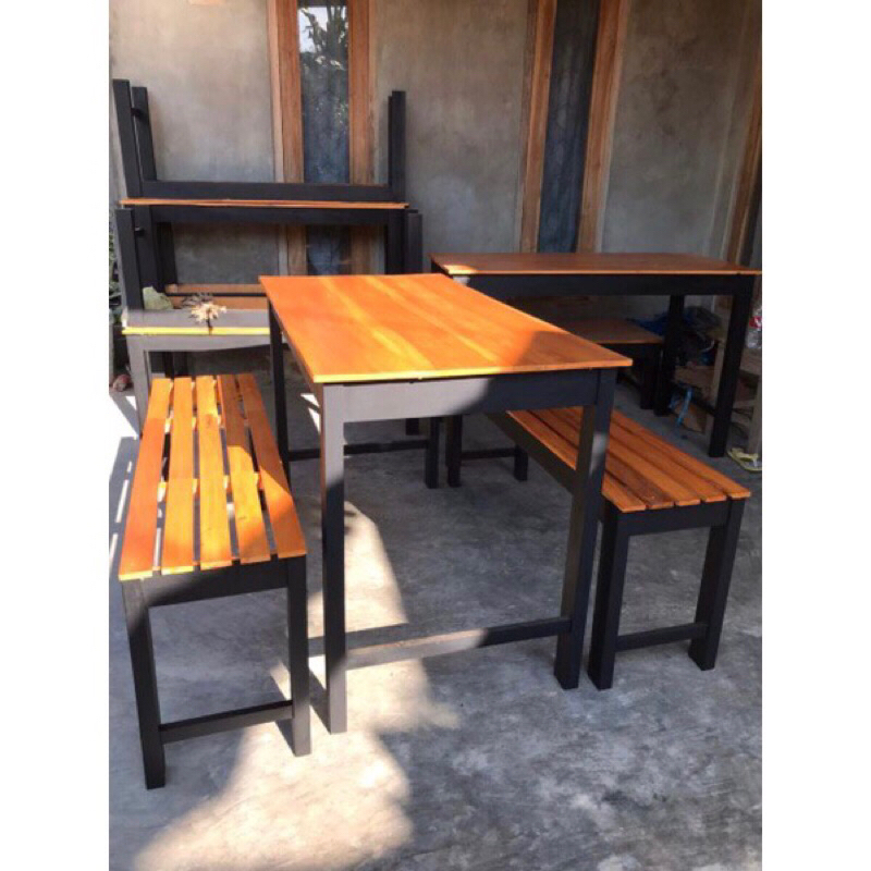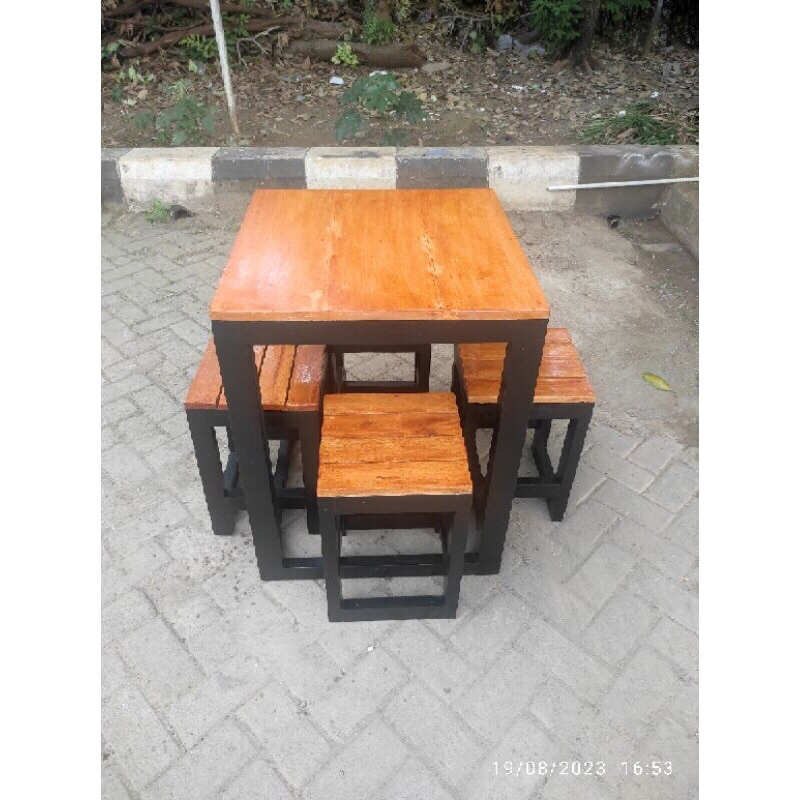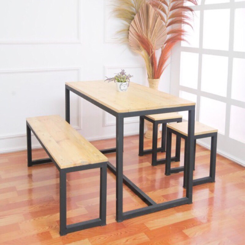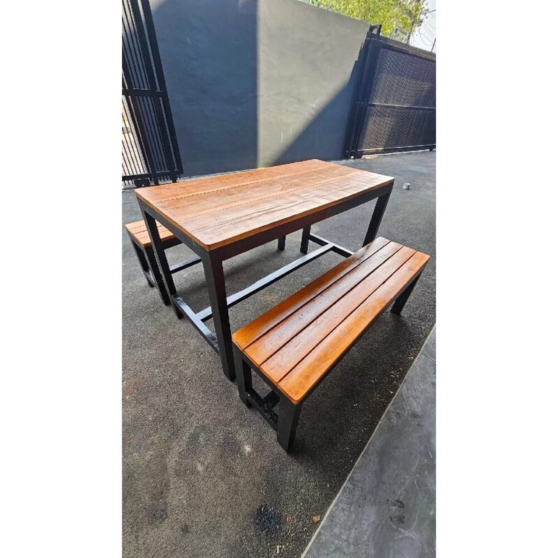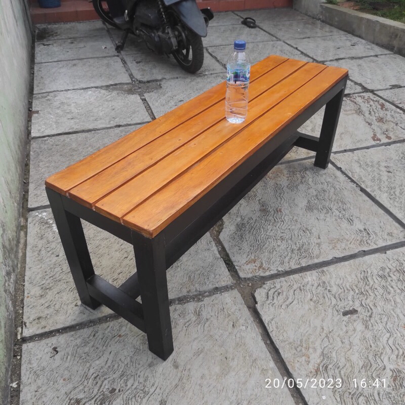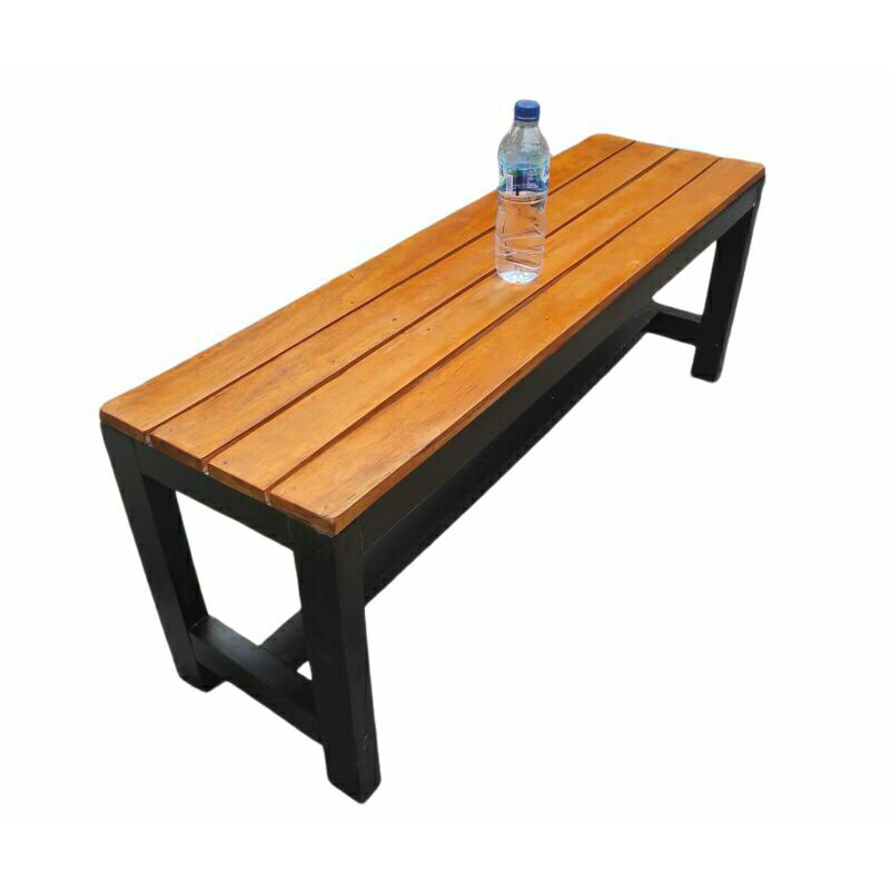 1 set bangku panjang kayu + besi 120x35x45 / kursi tunggu antrian / kursi besi kedai cafe / kursi kayu aesthetic / kursi panjang kayu besi / kursi warung