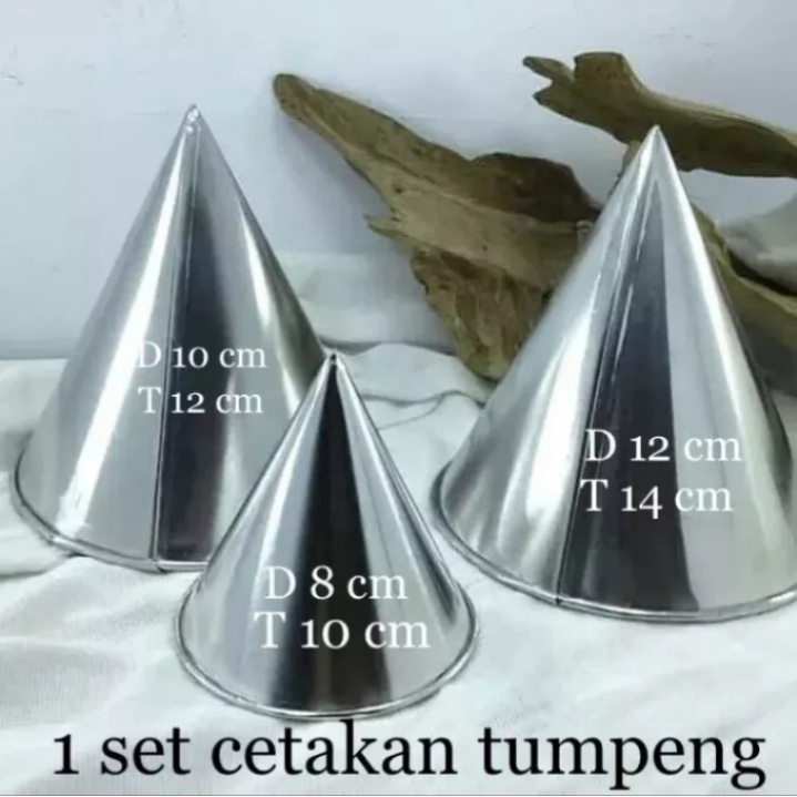1 set cetakan tumpeng 8,10,12 cm isi 3 pcs cetakan tumpeng mini loyang tumpeng mini kerucut bahan alumunium tebal
