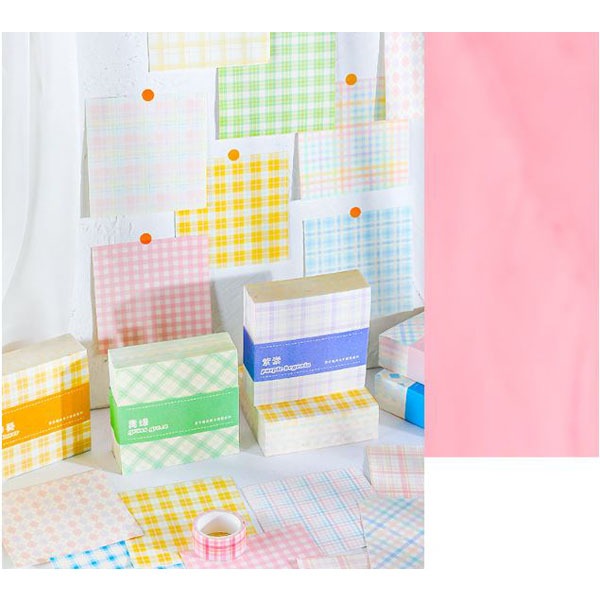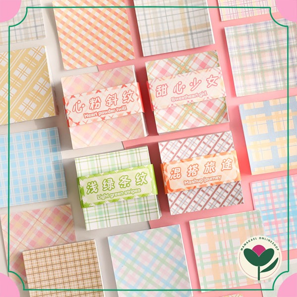 1 set isi 200 lembar deco paper plaid series kawai estetik kertas hias dekorasi jurnal scrapbook lucu cute motif kotak MK1446