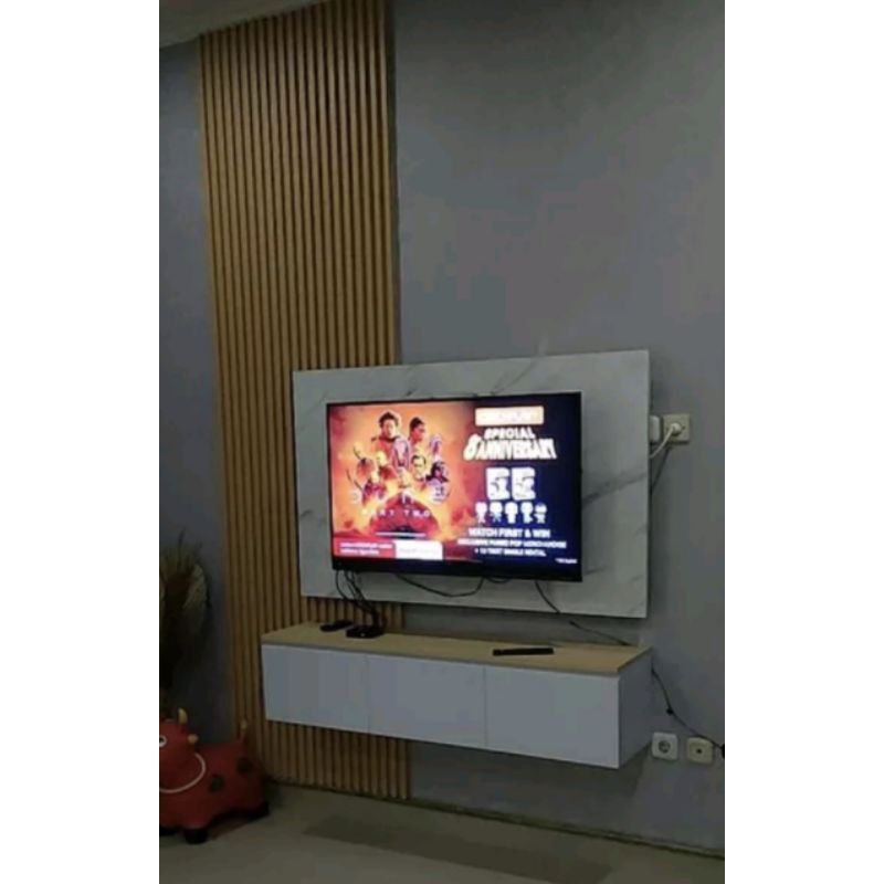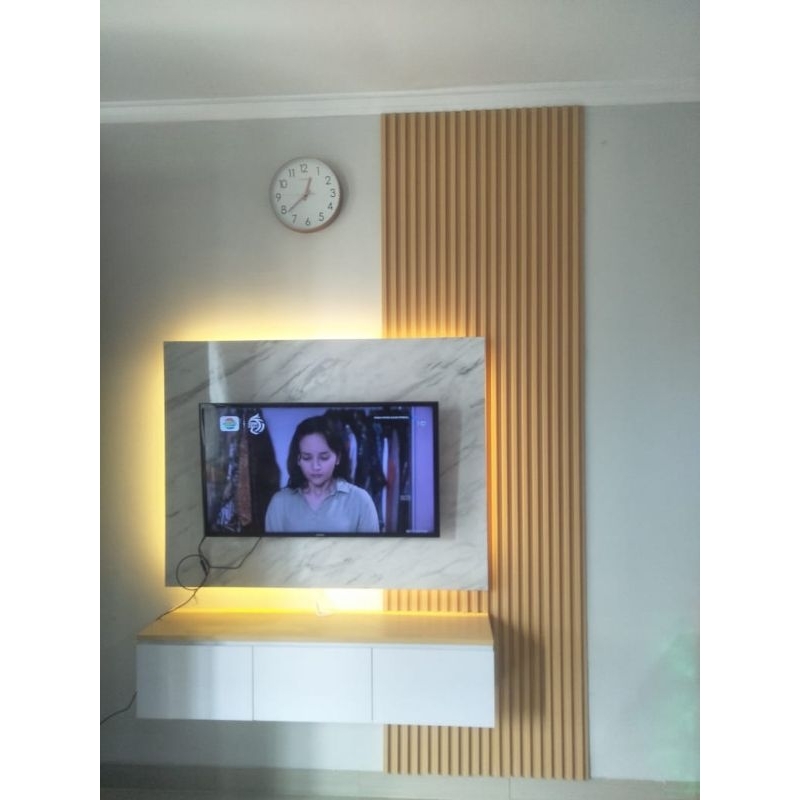 1 set meja backdrop tv dan wpc kekinian viral include lampu,1stopkontak+saklar