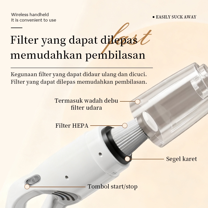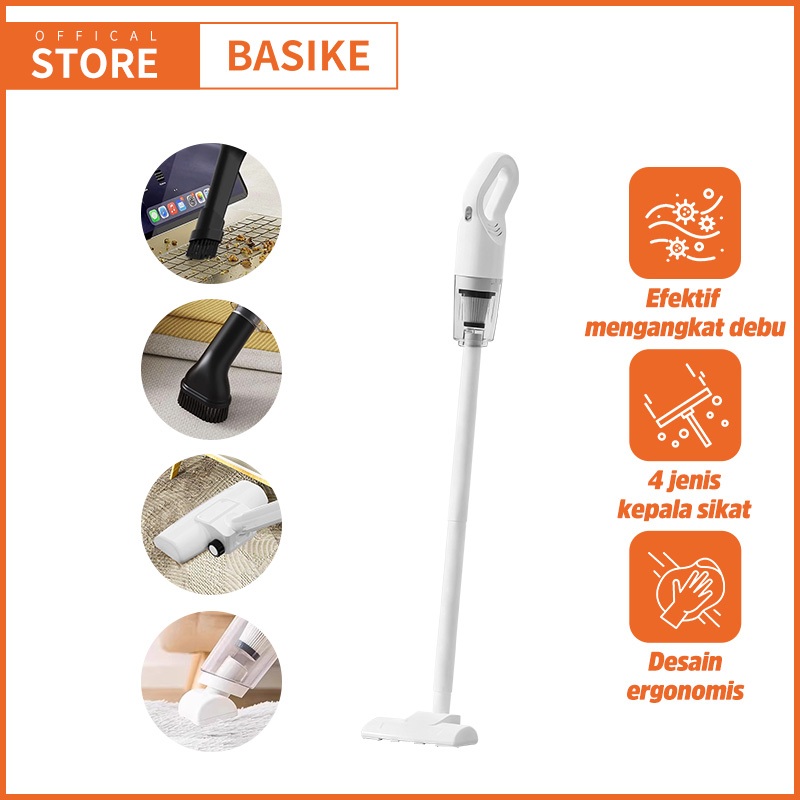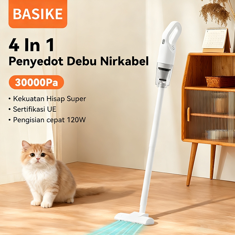 BASIKE Penyedot Debu Nirkabel LT15 Vacuum Cleaner Tanpa Kabel 30000Pa 120W Daya Hisap Kuat untuk Rumah & Mobil Penyedot Bulu Hewan Anti Alergi Basmi Tungau Ringan 1kg Multi Fungsi