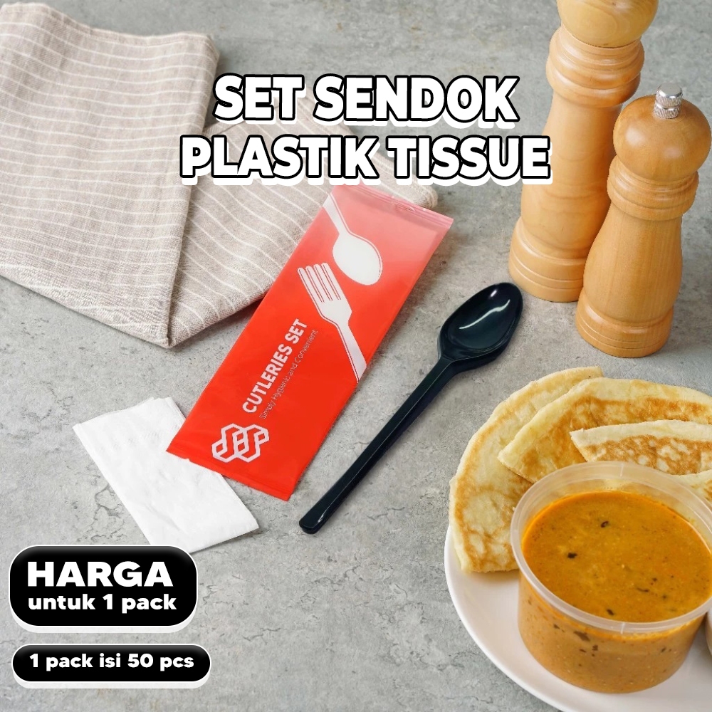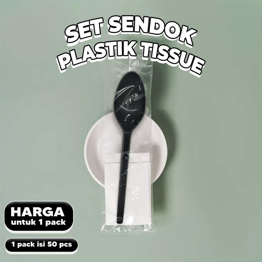 Sendok Plastik dan Tissue Set Premium Hitam 2in1