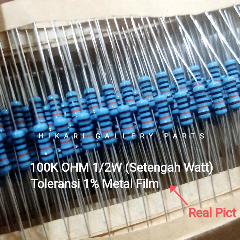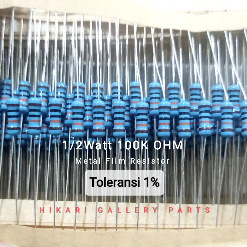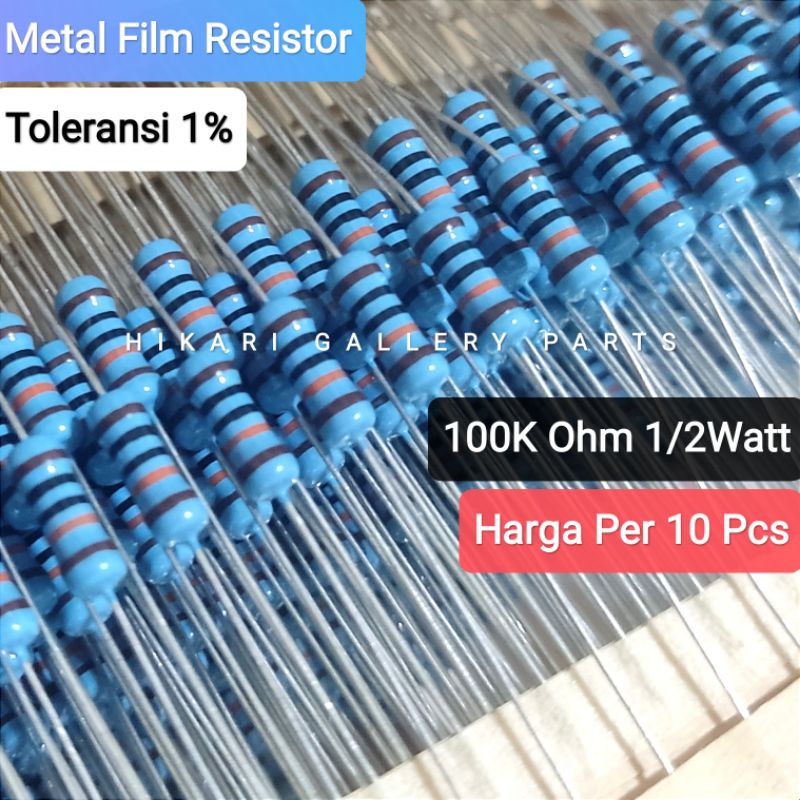 10 PCS RESISTOR METALFILM 100K OHM 1/2 WATT TOLERANSI 1% / 100K OHM 1/2W TOL 1% Metal Film Resistor per 10pcs