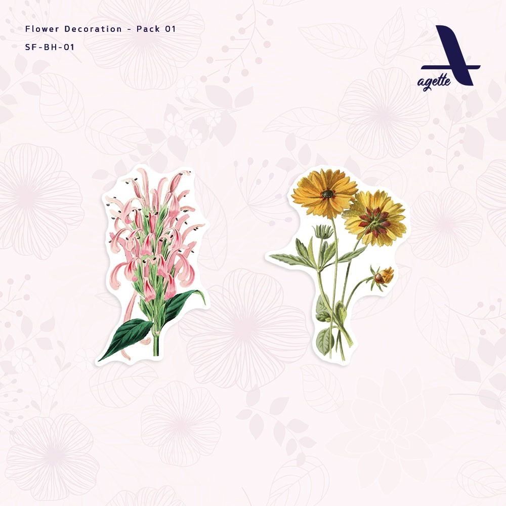 10 PCS - Stiker Bunga Hiasan - 01 - Laminasi - Waterproof Sticker