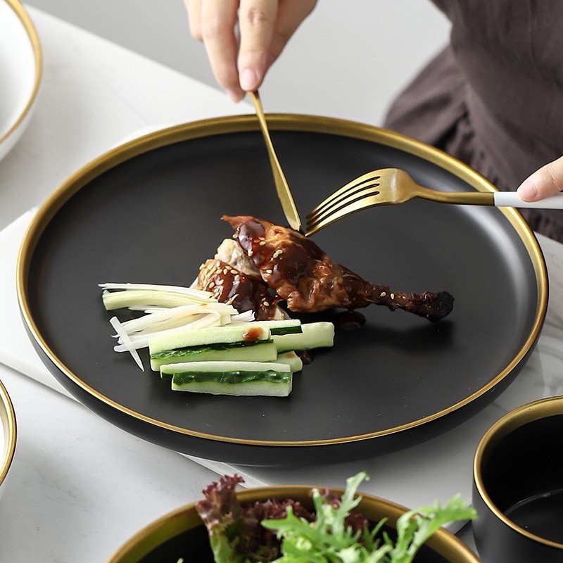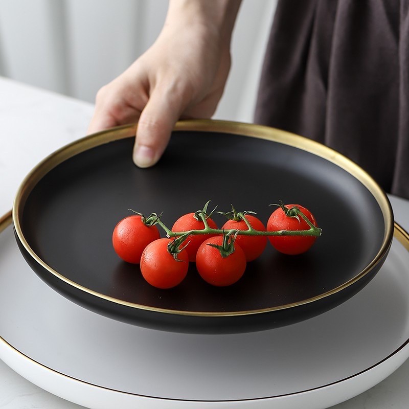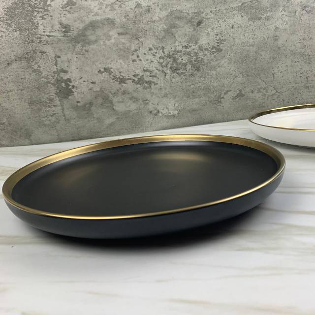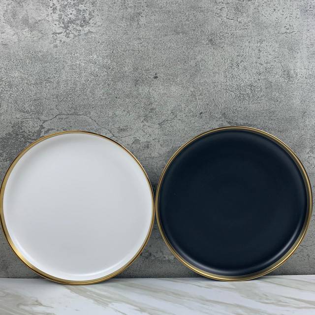 10" PIRING MAKAN MOSCOW KERAMIK HITAM , PUTIH DAN PINGGIRAN EMAS