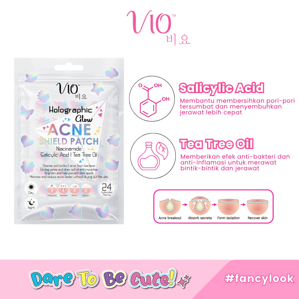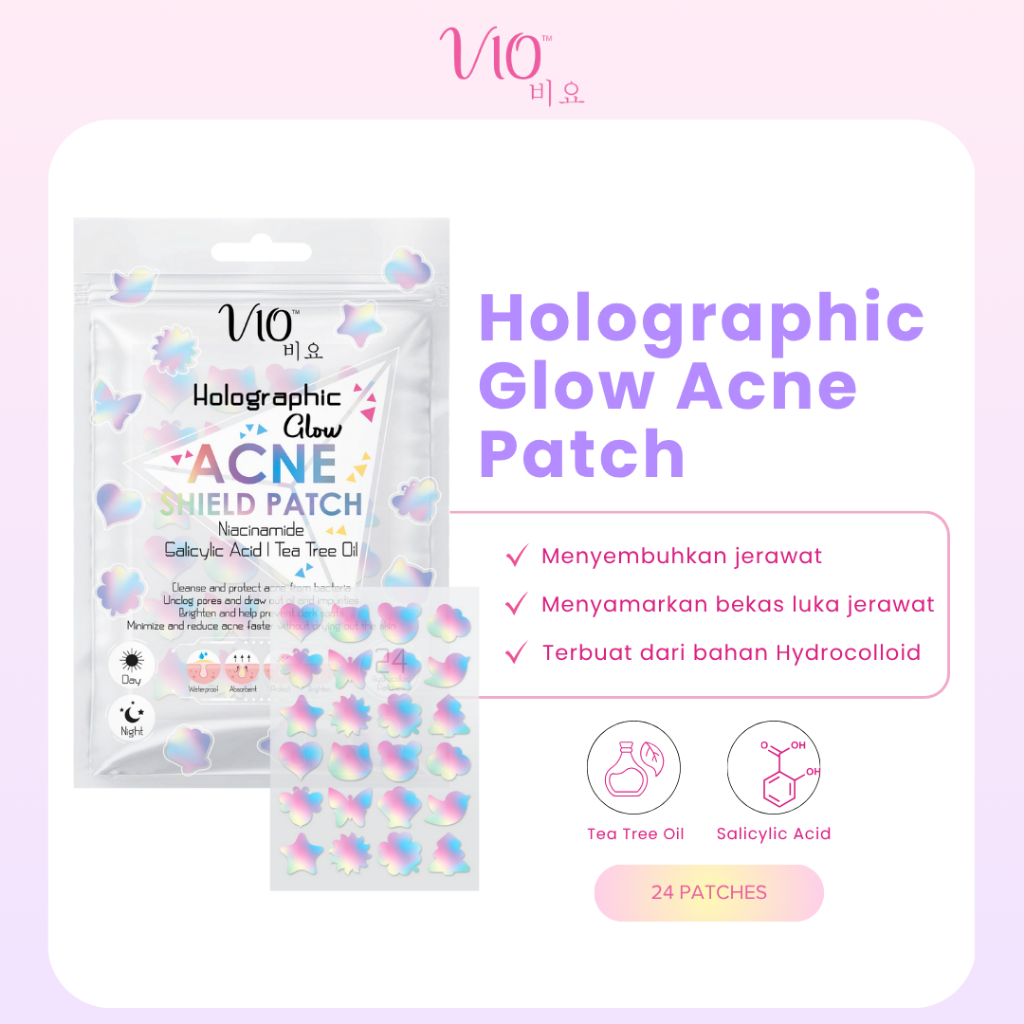 [50% OFF]Vio Acne Shield Patch Holographic Glow -24 Patches- patch holo berbentuk lucu pimple patch, meredakan mengangkat jerawat aktif ]