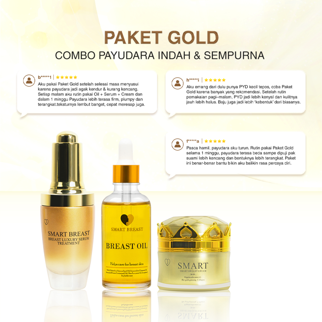 Smart Breast - Paket Gold ( 1 Serum + 1 Cream + 1 Oil ) Skincare Payudara Terbaik