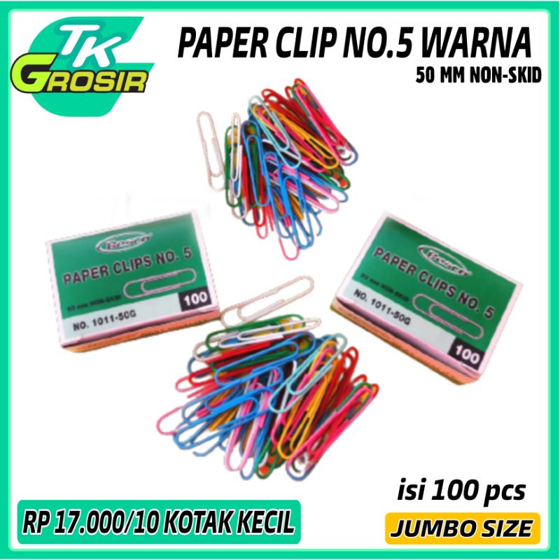 10 kotak paper clips no. 5 warna warni isi 100 pcs/penjepit kertas clips