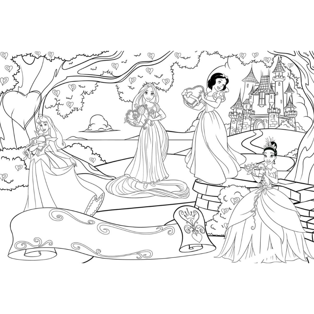 10 lembar Gambar sketsa mewarnai melukis anak TK dan SD tema princess disney