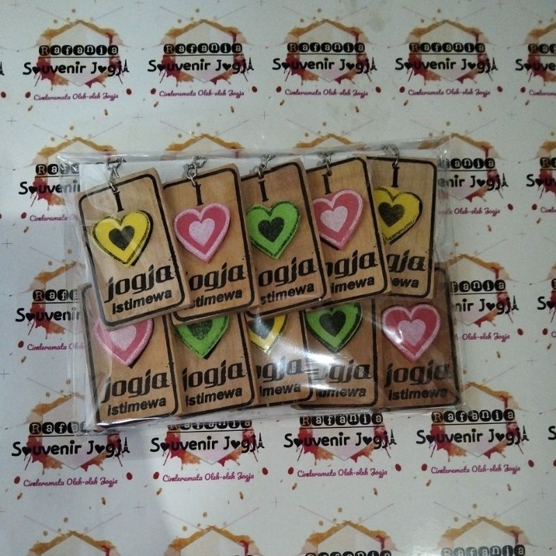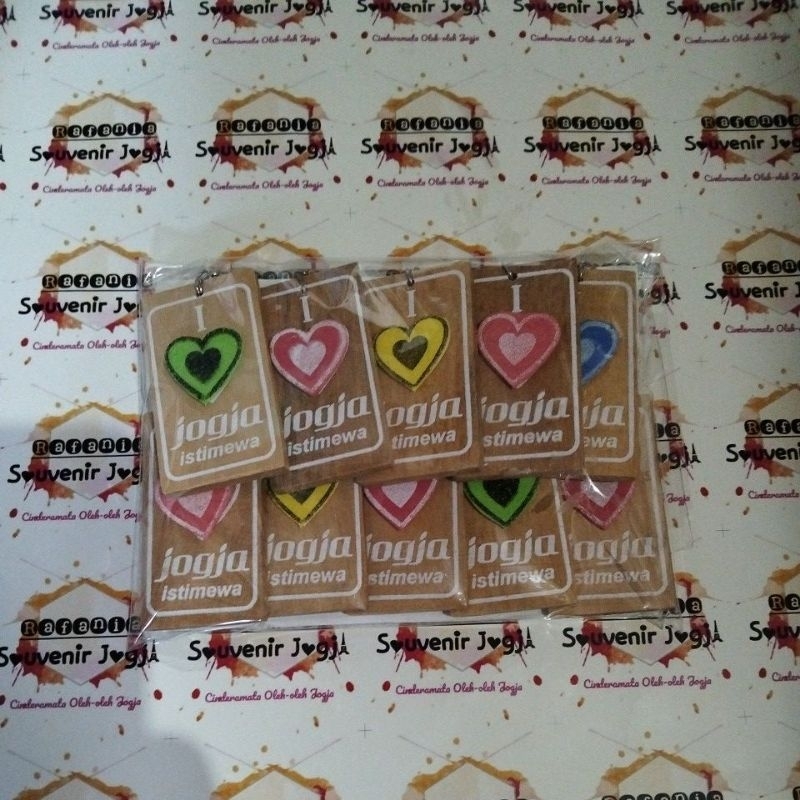 10 pcs Gantungan Kunci Jogja Persegi Love Spon Souvenir Indonesia