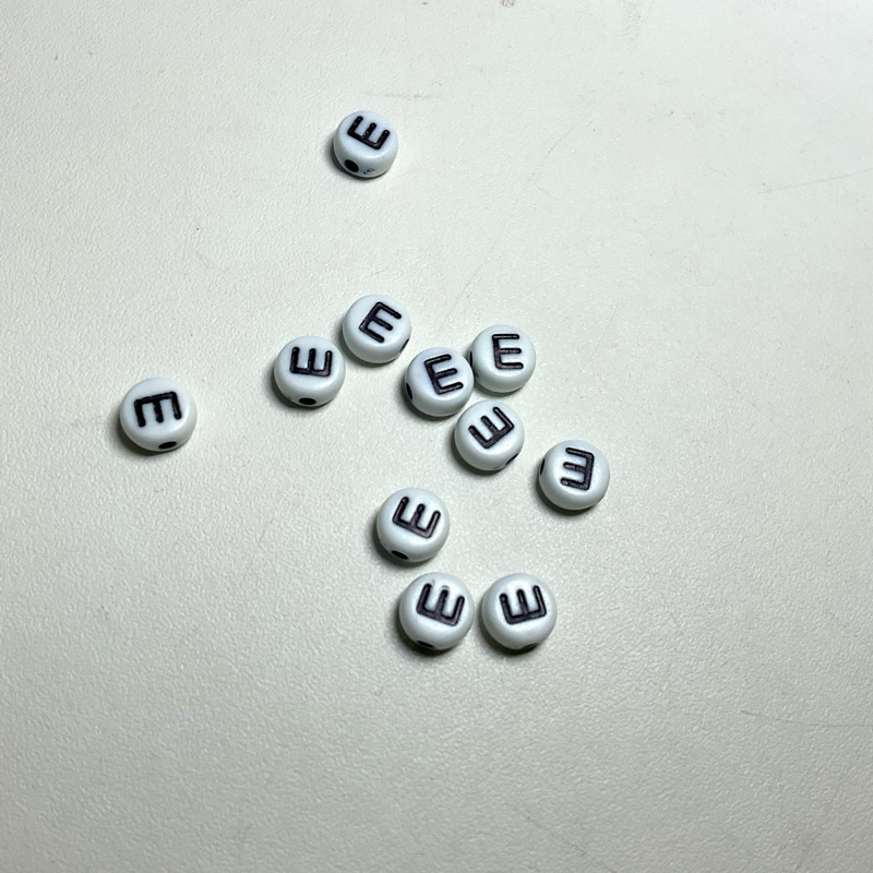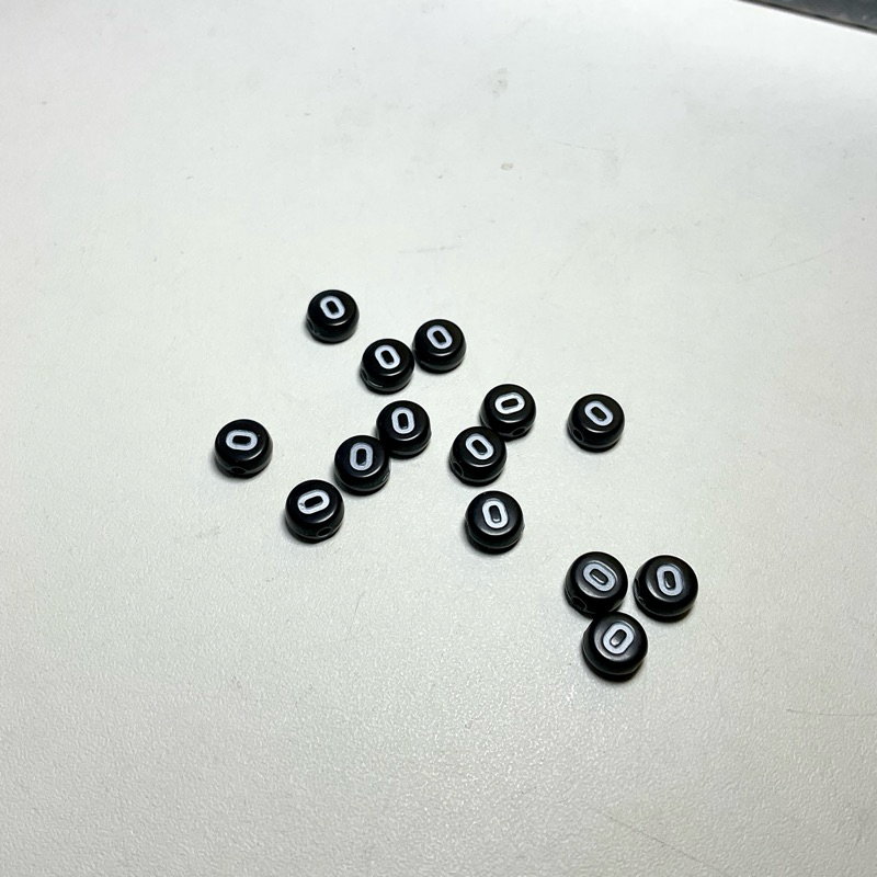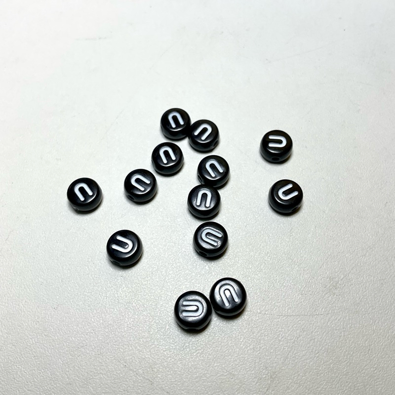 10 pcs manik huruf vokal a i u e o hitam putih untuk bahan meronce diy gelang kalung cincin phonestrap