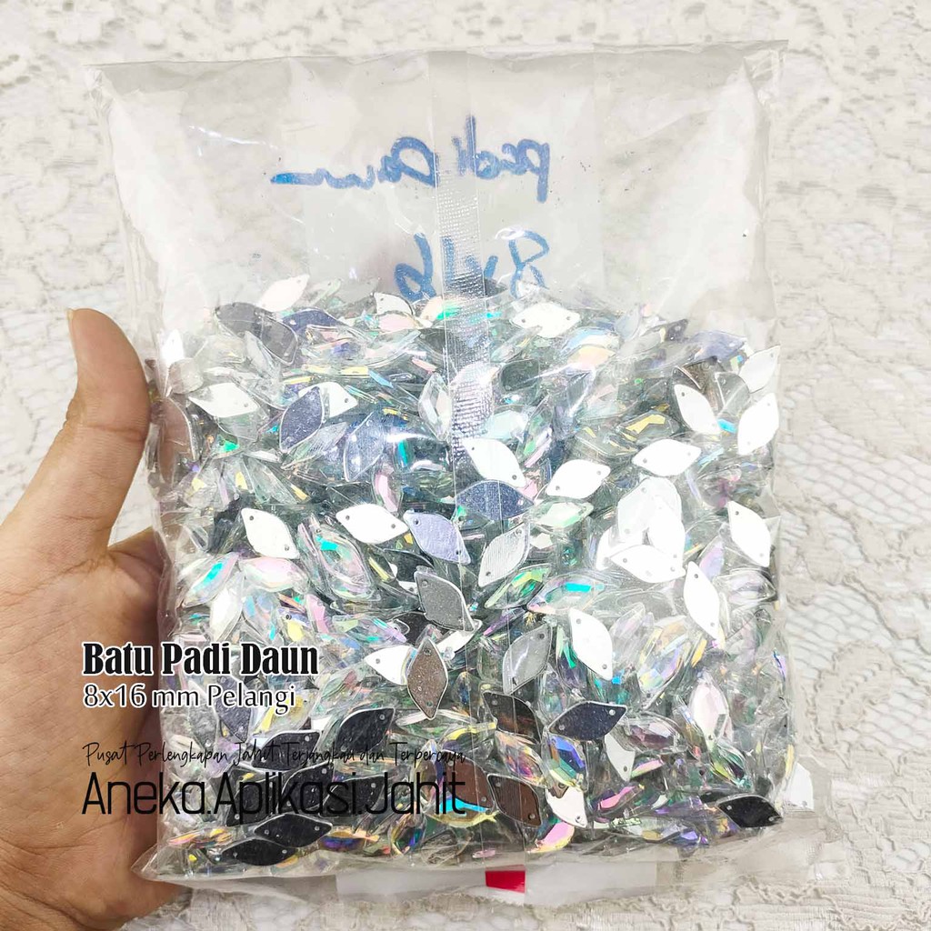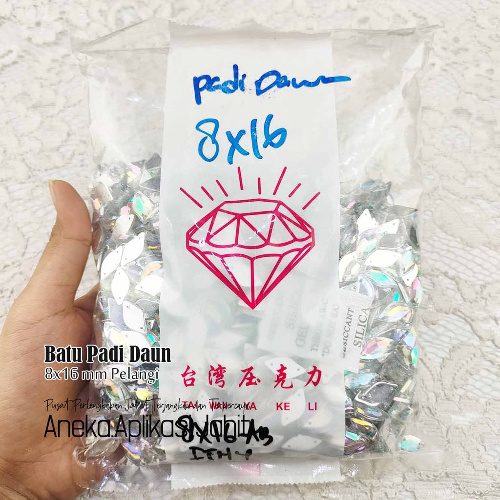 100 BIJI BATU PAYET PADI / DAUN 8X16 MM PELANGI