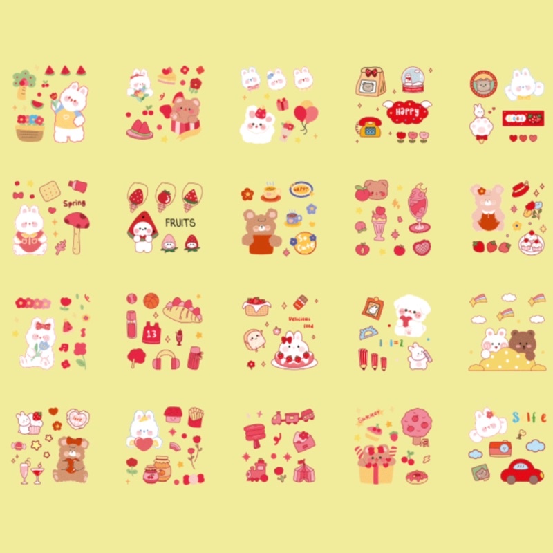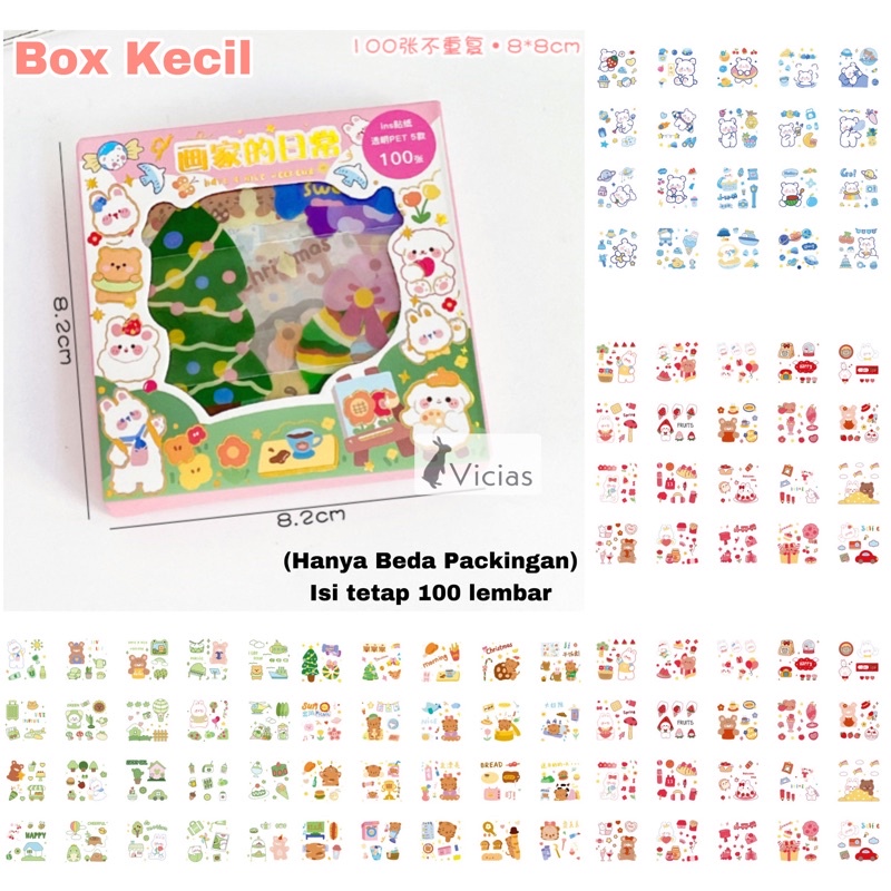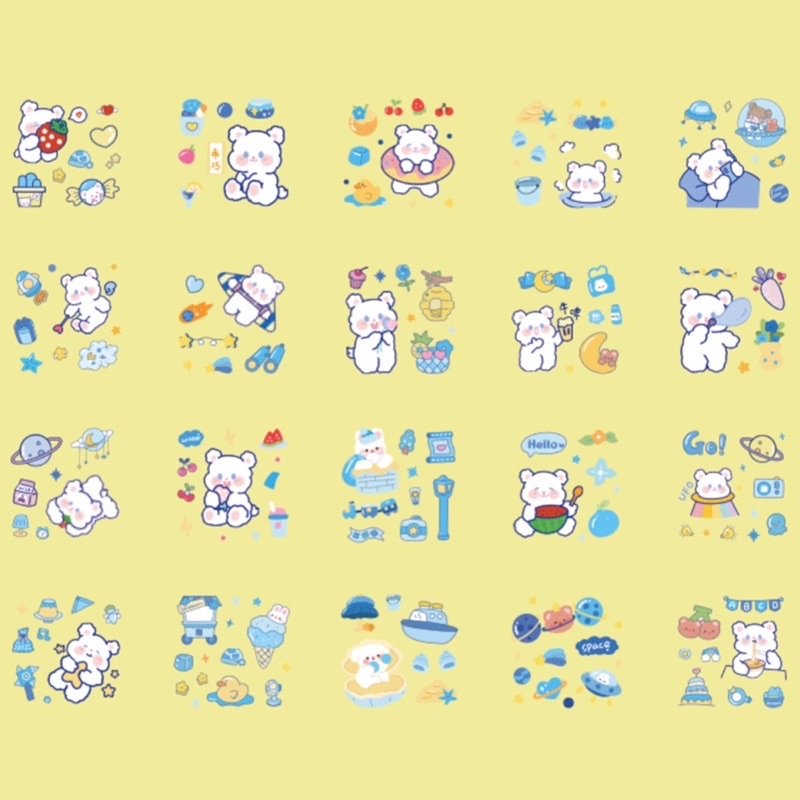100 Lembar Sticker PVC Stiker Botol Minum Anak Tumblr Viral Lucu BEAR PAINTING