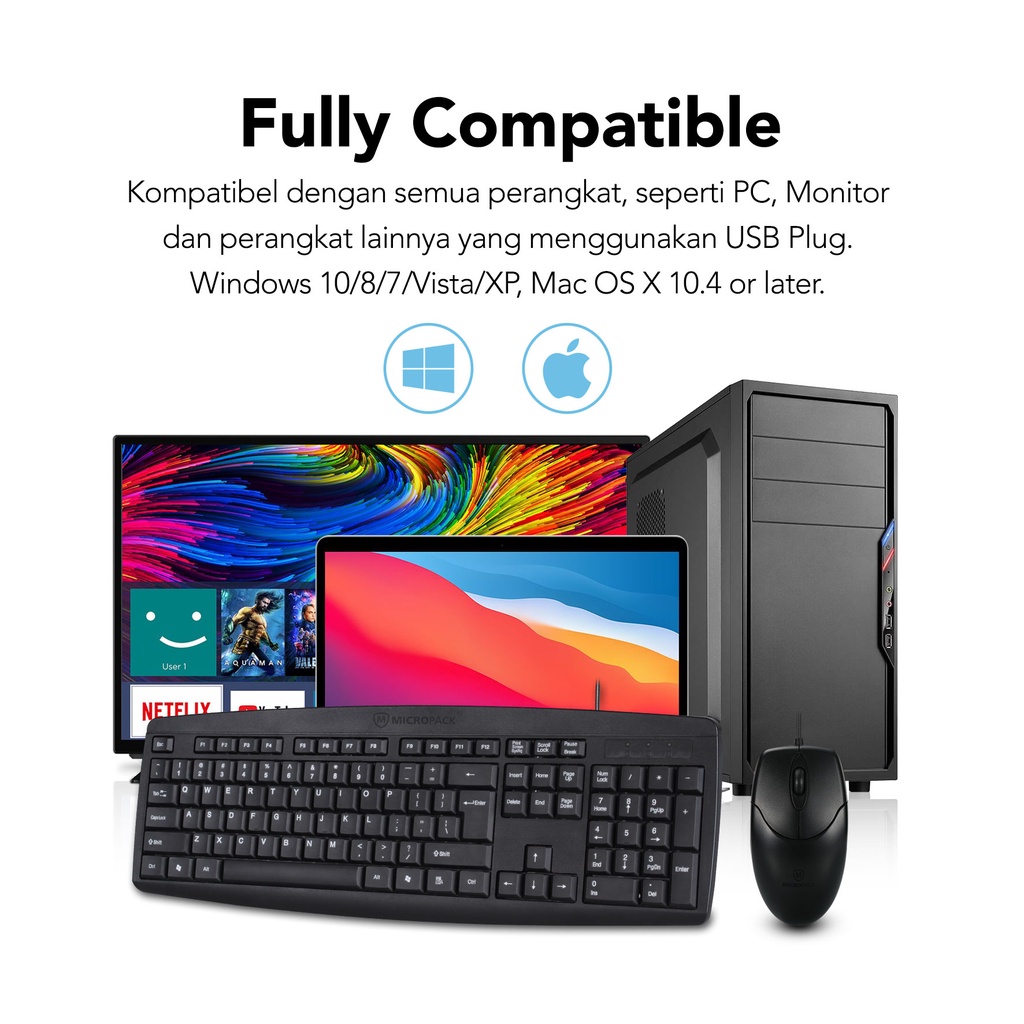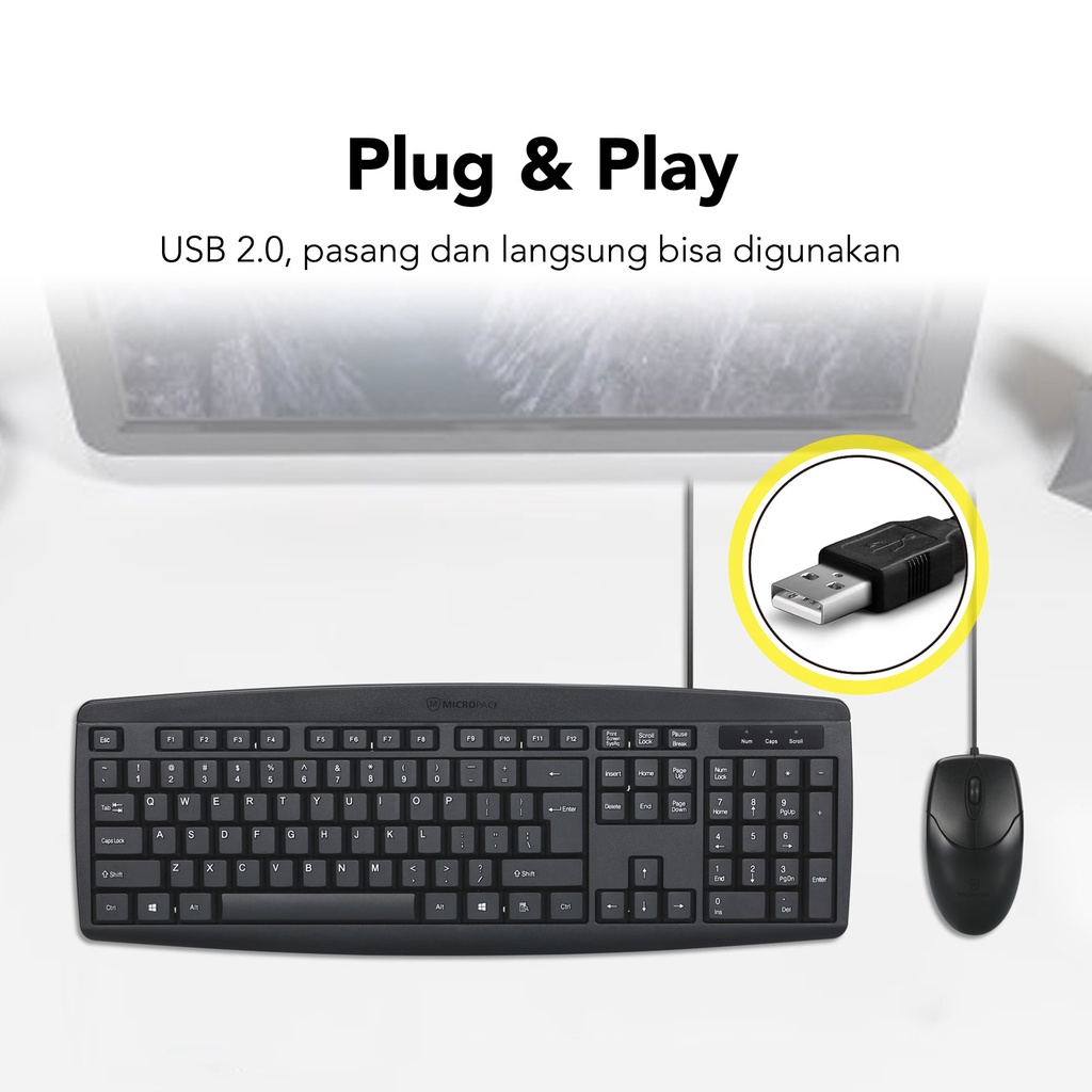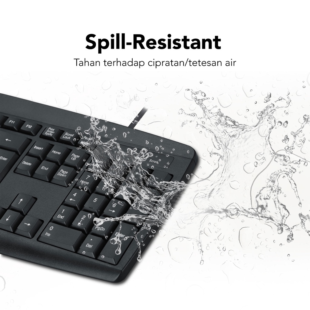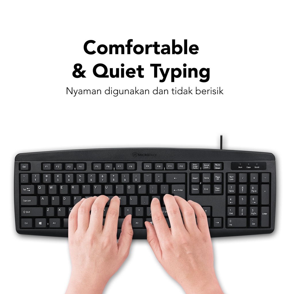 Micropack Keyboard Cable Wired Low Cap Black - Spill Resistant - KM-2003
