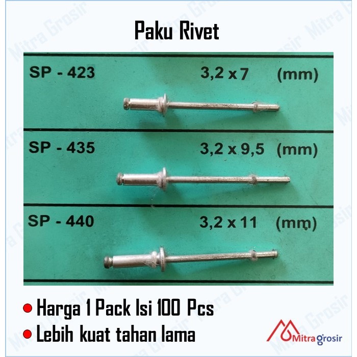 100 Pcs Paku Rivet / Paku Rivet Holow / Aluminium / Seng / Paku Rivet Ripet Drill Hole Rifet Rivetti 3.3 - 3.4 MM 423 435 440 Knalpot Ecer 100 Pcs Murah