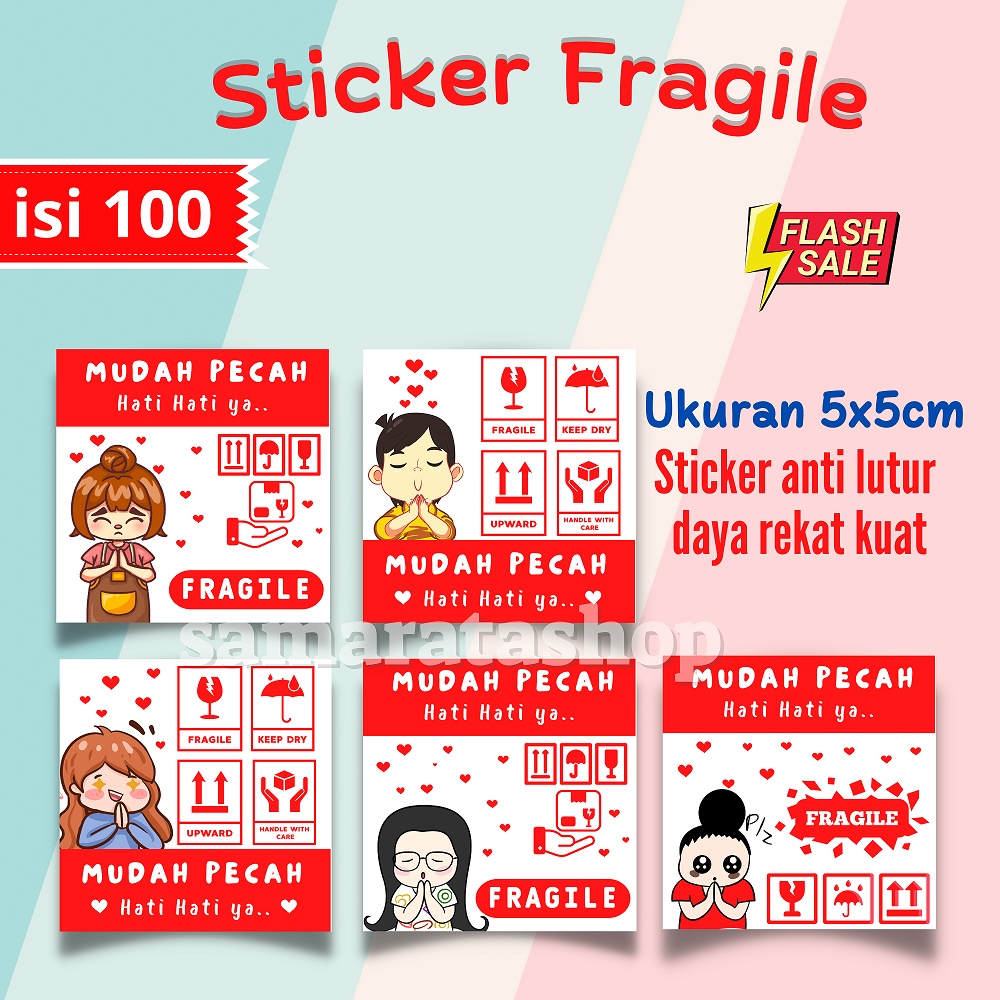 100 Pcs Sticker Fragile / Stiker Fragile / Tempelan Fragile