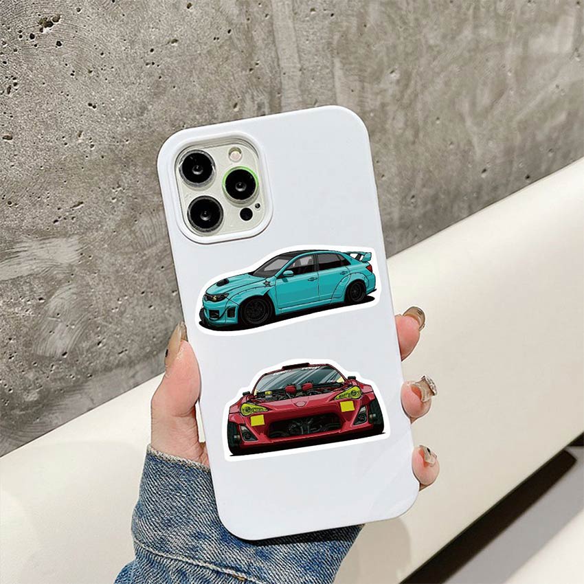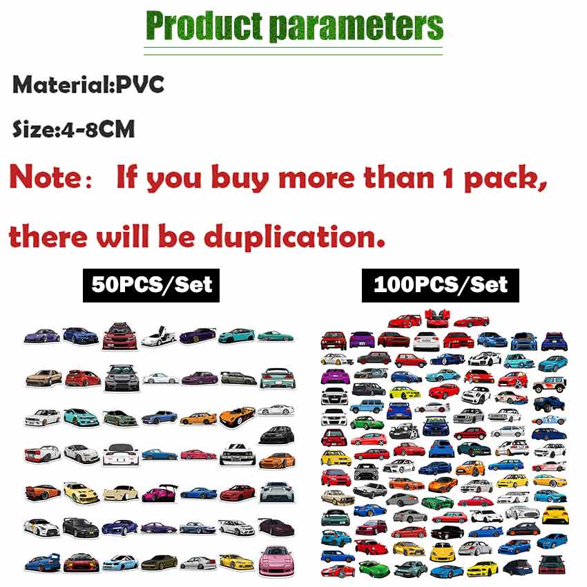 100 Pcs Stiker Mobil Balap JDM Bahan Pvc Anti Air 2 Desain Stiker Graffiti Skateboard Koper Bagasi DIY Laptop Mobil Stiker Decals Kid