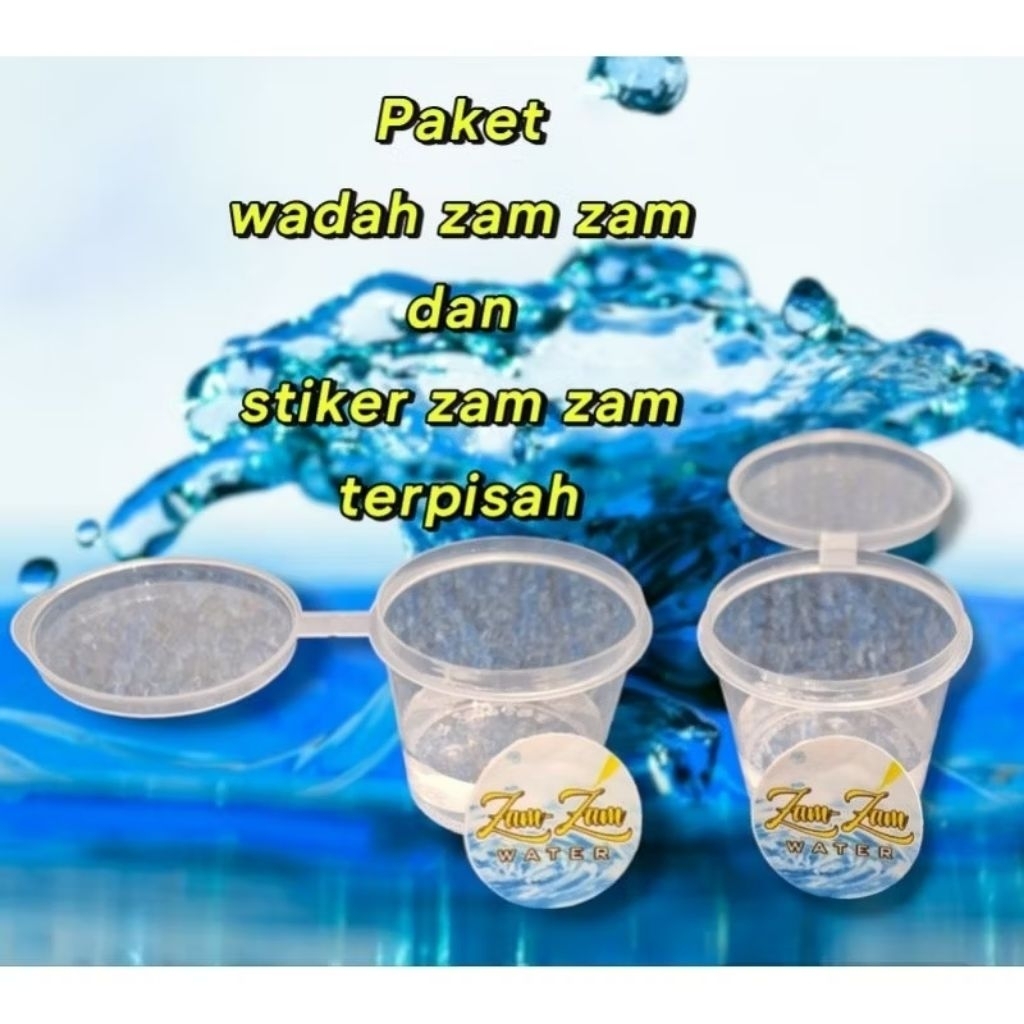 100 paket isi wadah zam zam dan stiker terpisah (belum direkatkan/ ditempel) cup plastik zam-zam termasuk stiker gelas air zam zam botol zam zam