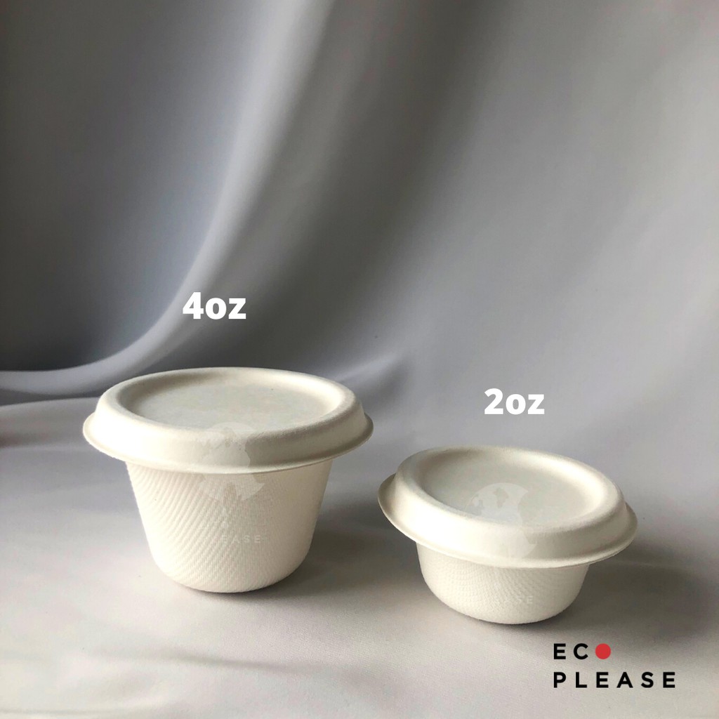 100pcs Ecoplease 2Oz 40ml Bagasse Sauce Cup - Home Compostable Ecofriendly Ramah Lingkungan Biodegradable
