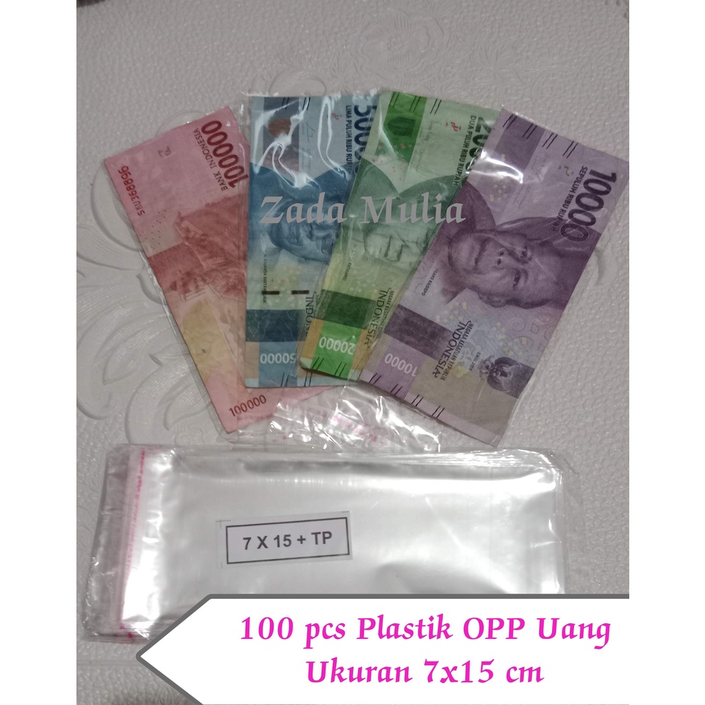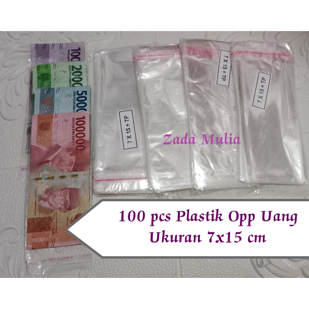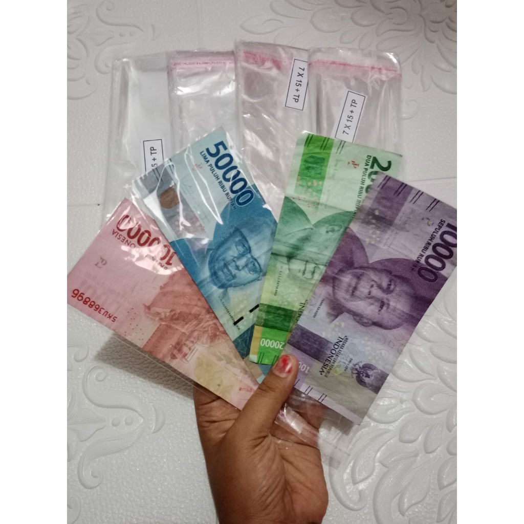 Plastik Uang Buket OPP 7x15 cm isi 100 pcs Tebal Sedang , plastik seal lem tempel