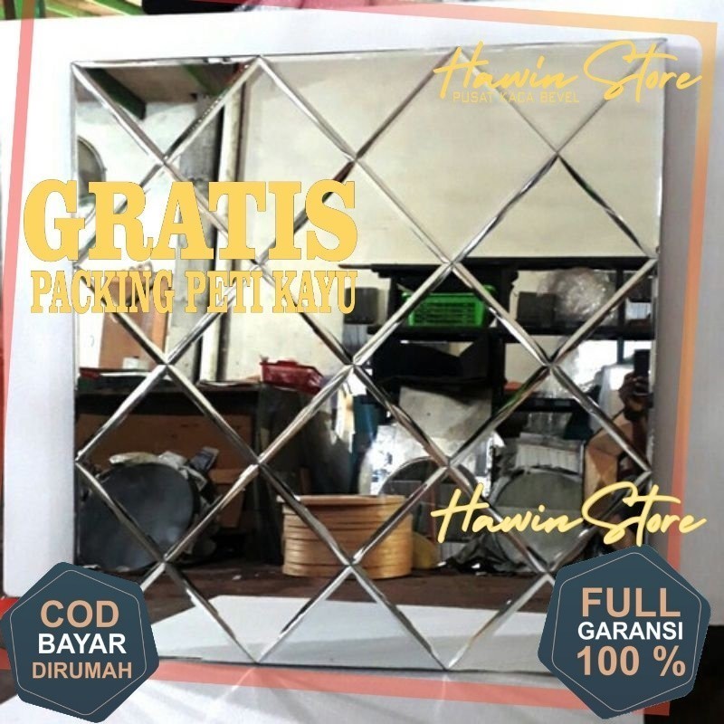 100 x 100 5mm FREE PACKING PETI KAYU + GARANSI PECAH 100% Cermin Custom Wajik Cermin Bevel 1cm Cermin 5mm - ASLI KACA Silahkan Tambahkan Extra Packing untuk pengiriman lebih Aman - Cermin Moulding