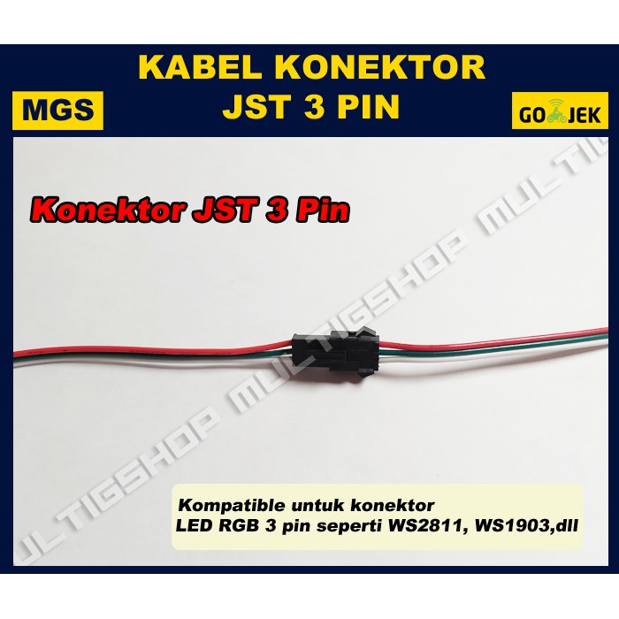 100Set Kabel Konektor LED RGB 3 Pin JST 3 Pin