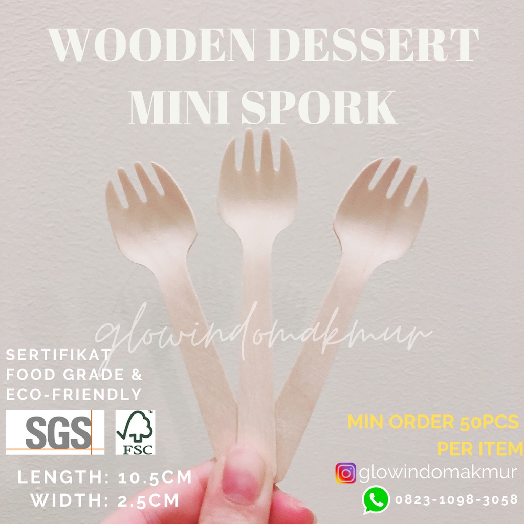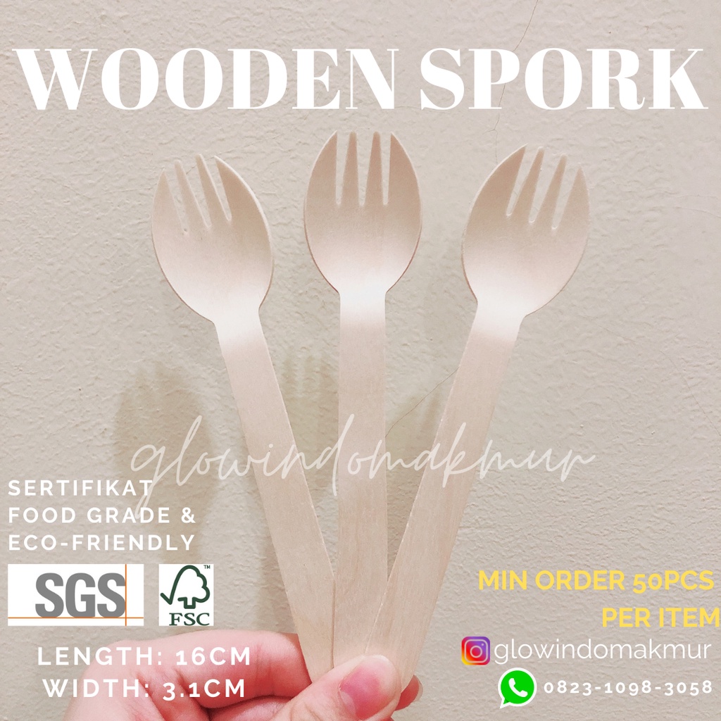 100pcs Gase Kayu Spork Sendok Makan Kayu Garpu Makan Kayu Wooden Spoon Wooden Fork Wooden Spork