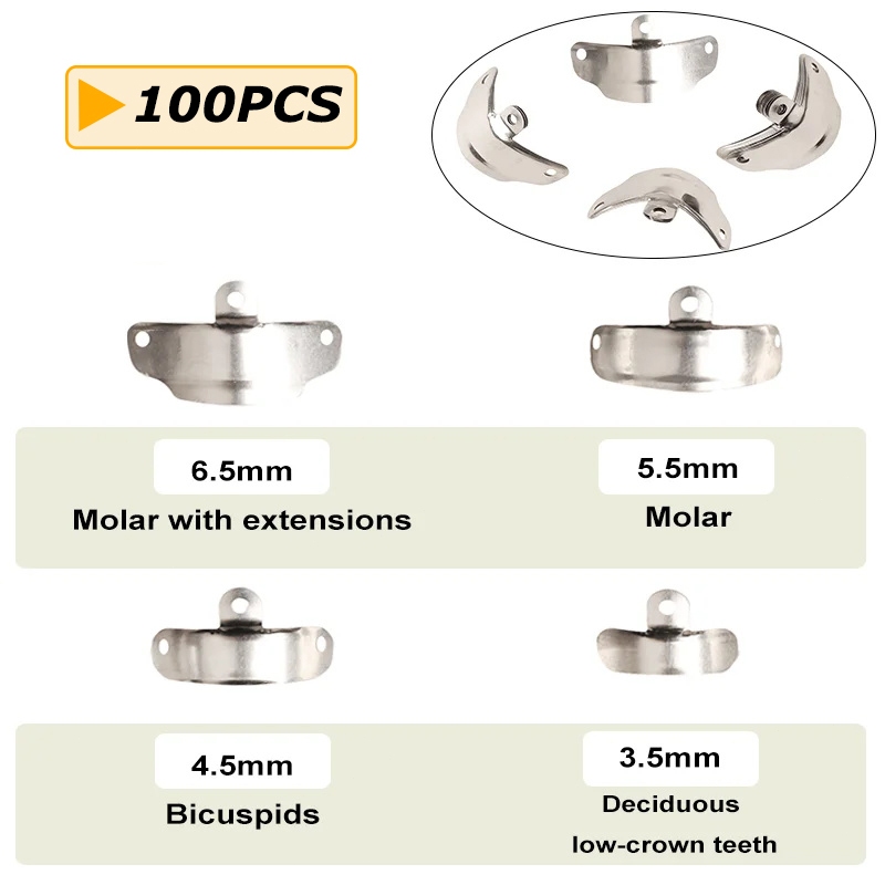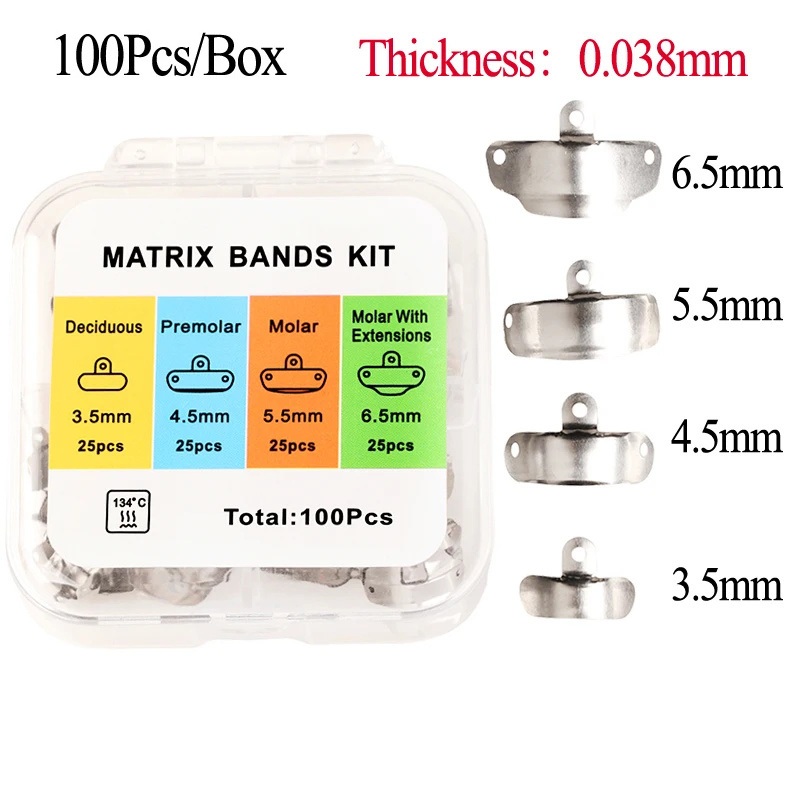 100pcs/box Dental Matriks Dental Sectional Contoured Matrix Band Molar Premolar Matriks Metal Logam Gigi Alat Matriks Gigi
