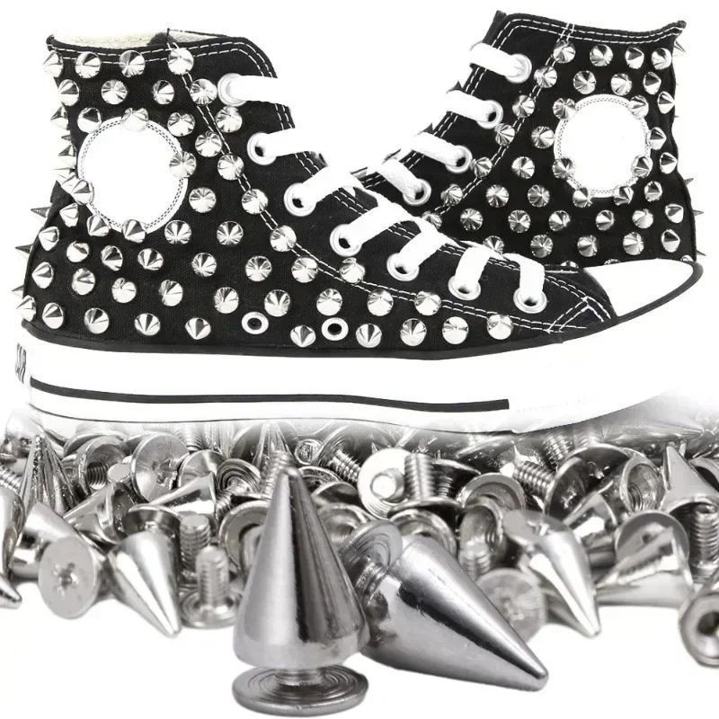 100set Spike Stude Nikel Kuat Mengkilap 7x10mm Spike Punk Lancip Termasuk Baut