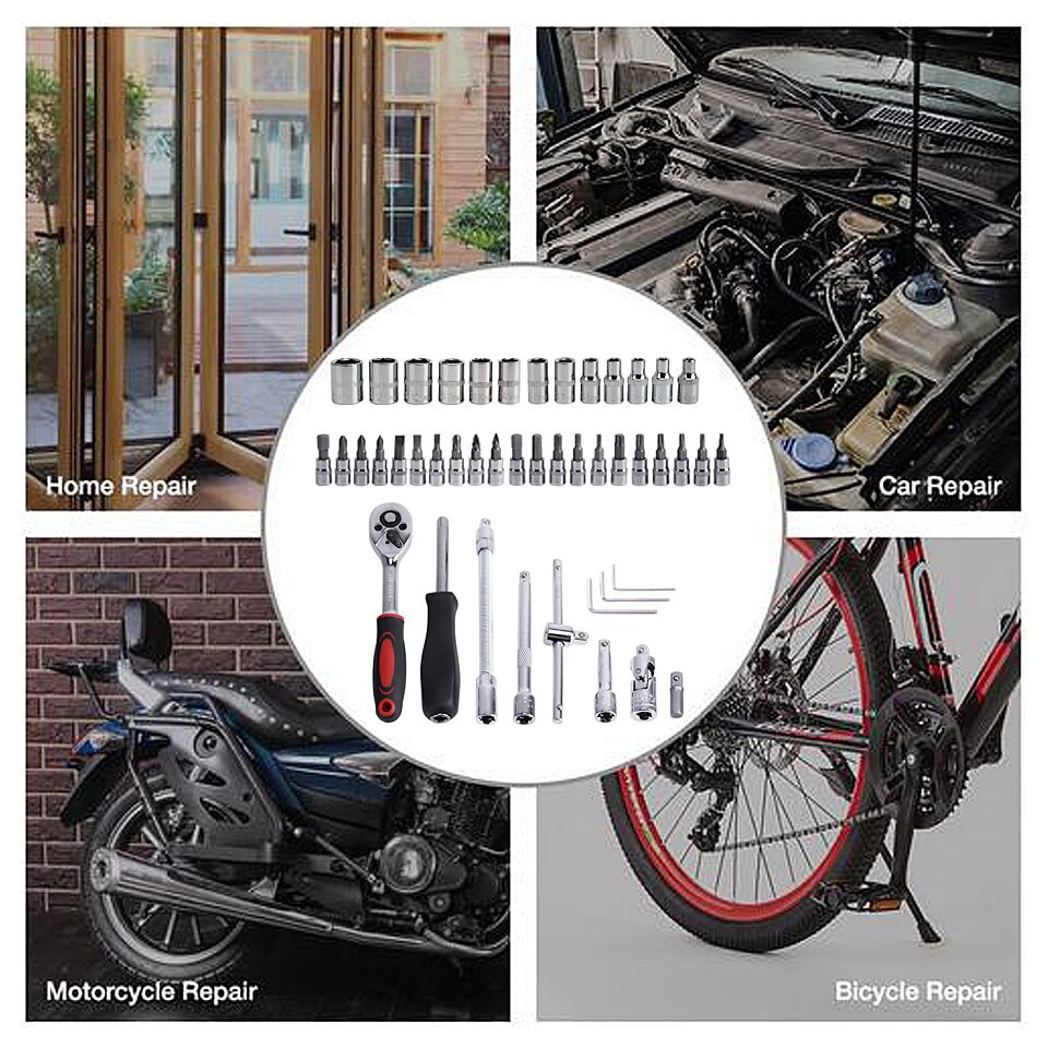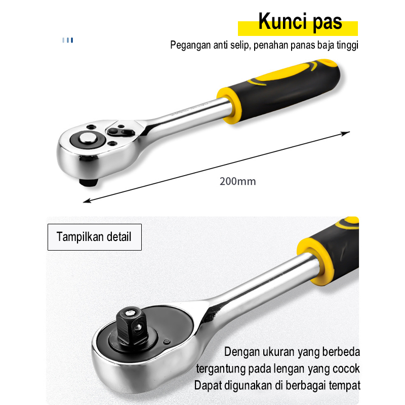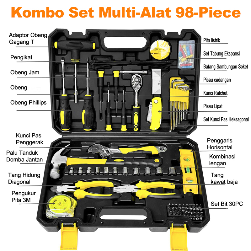 108 pcs Kunci shock set Shok Socket Ring Wrench Obeng Peralatan Perkakas Universal Kombinasi Set Tool Kit Reparasi Perbaikan Service Bengkel Mobil Motor Emergency Multifungsi Praktis Murah Bagus