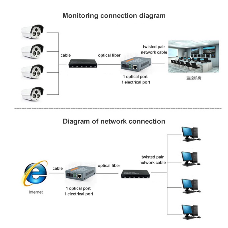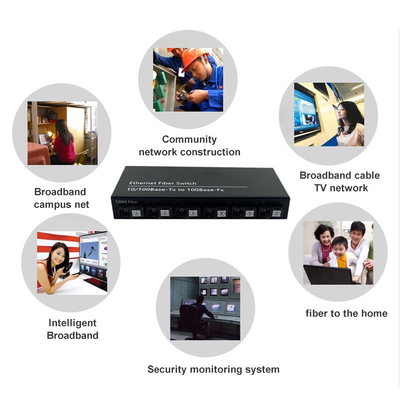 10M/100M Fast Ethernet Switch Convert 25KM Fiber Optical Media Converter Single Mode 2*RJ45 & 6*SC 3A3B Fast Fiber Switch 6 Ports