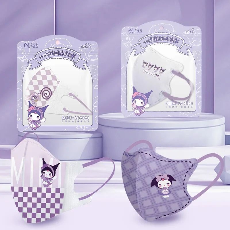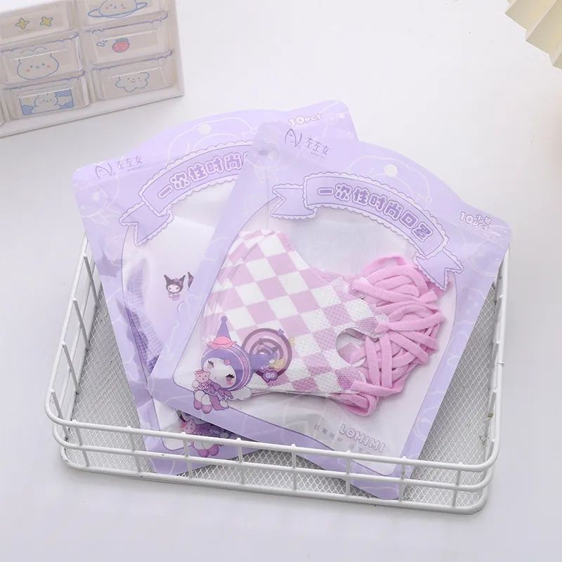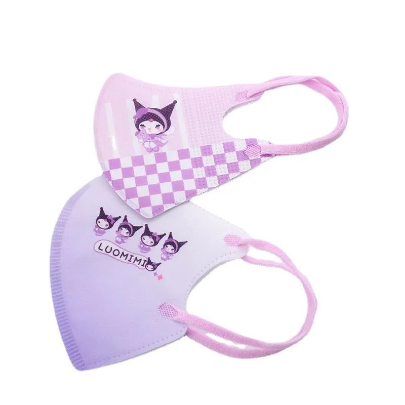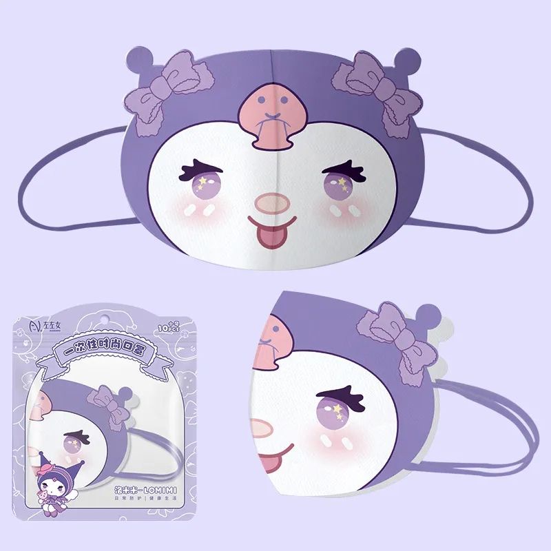 10PCS MASKER ANAK KARAKTER KARTUN 3D SANRIO KUROMI HEAD WARNA UNGU UNTUK USIA 3-14TAHUN EARLOOP 3PLY ANIME JAPAN CUTE FUNNY CHARACTER KIDS MASK