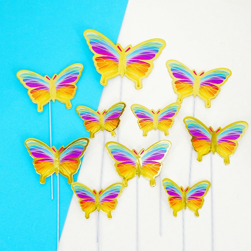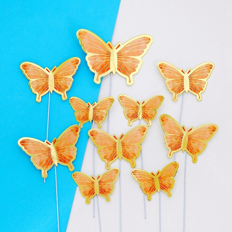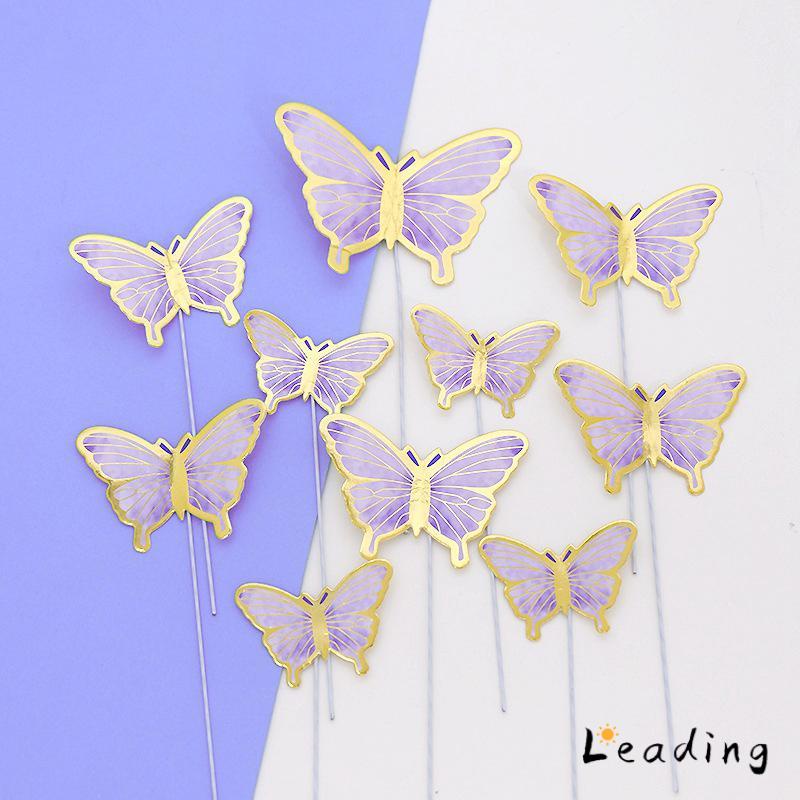 COD 10 Pcs Topper kupu kupu 10(set) Potongan Kupu-kupu Puncak Kue Topper hiasan butterfly buket Kue Dekorasi Kue Cake Decoration -Le