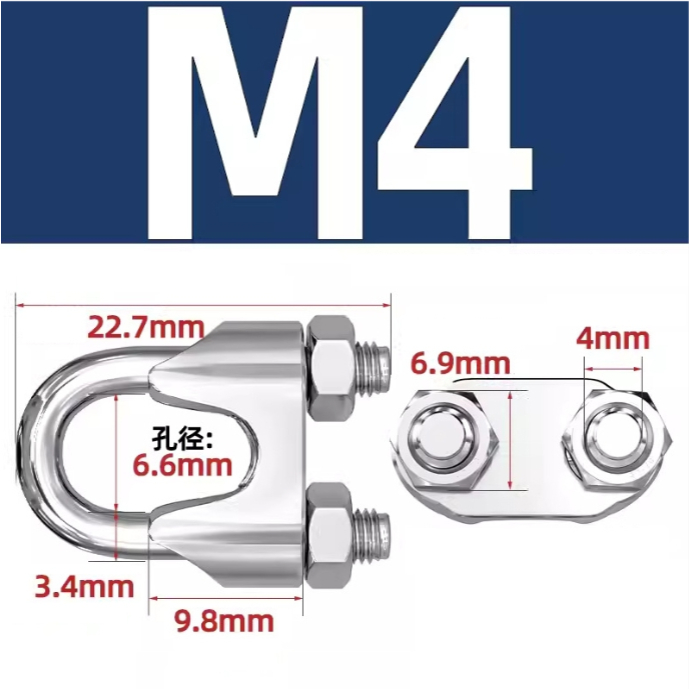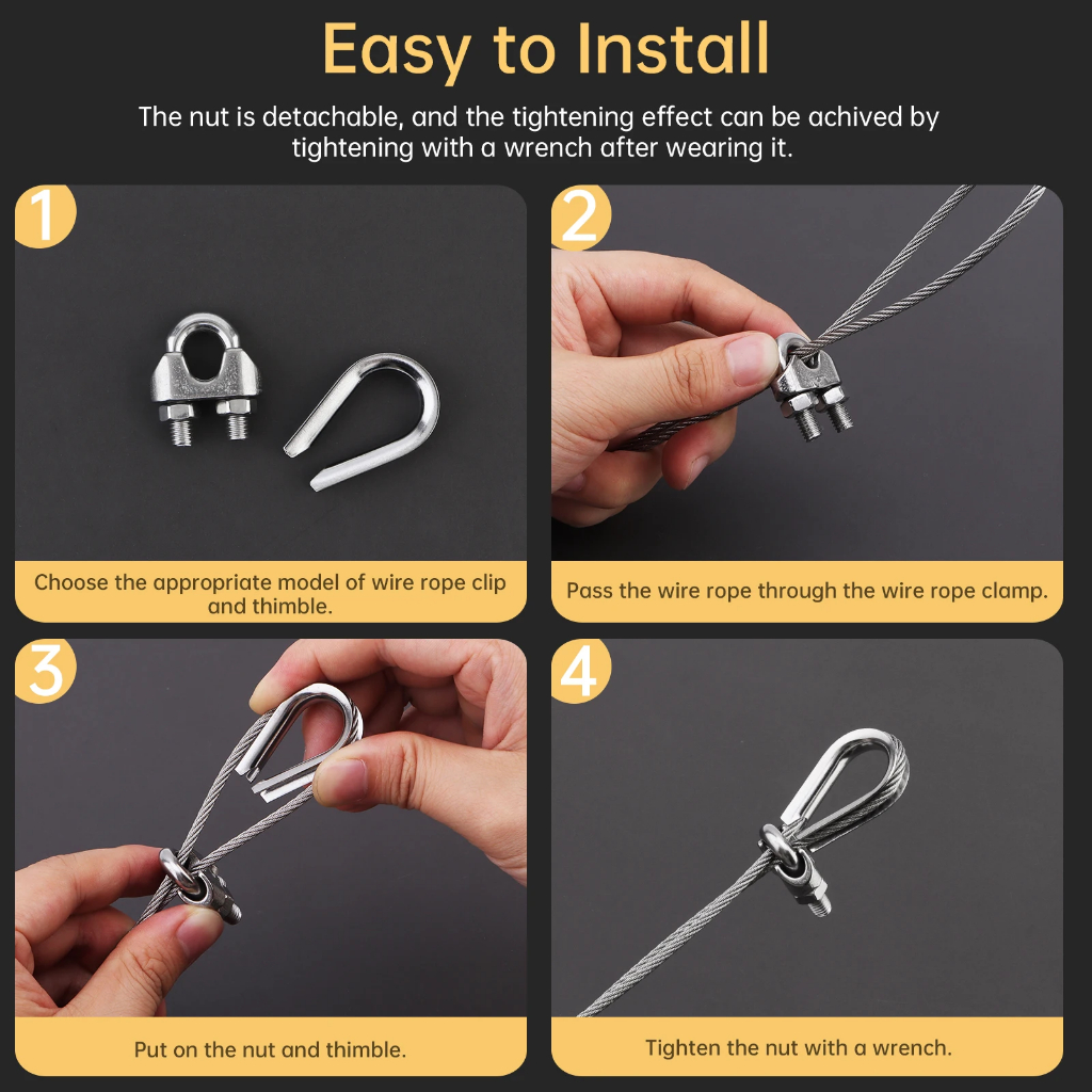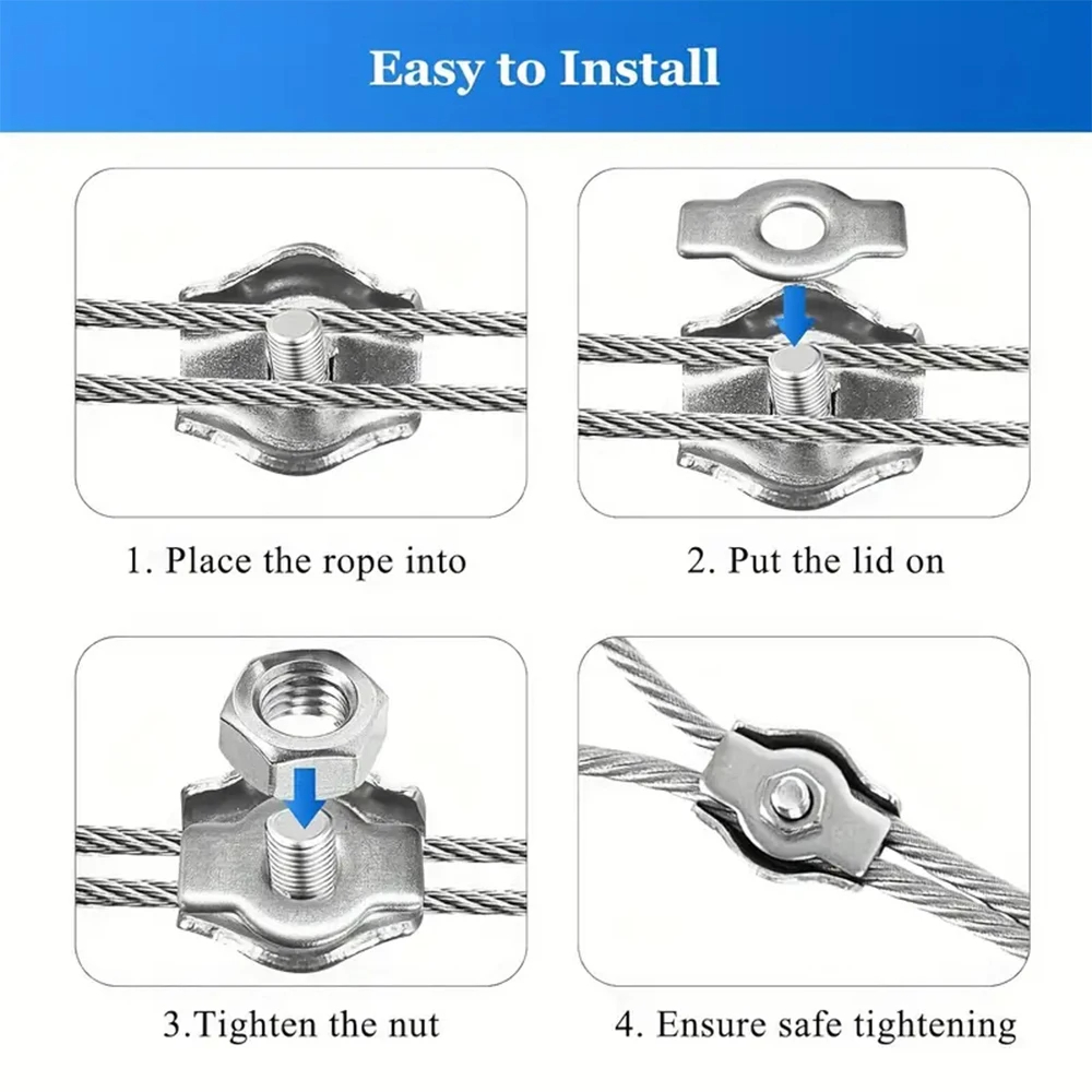 10pcs Klem Kawat Sling Klem Seling 2-3mm Pengait Kawat Seling Stainless Crimp Ferrule M4 Wire Rope Clip Ss 304 Crimp Ferrule