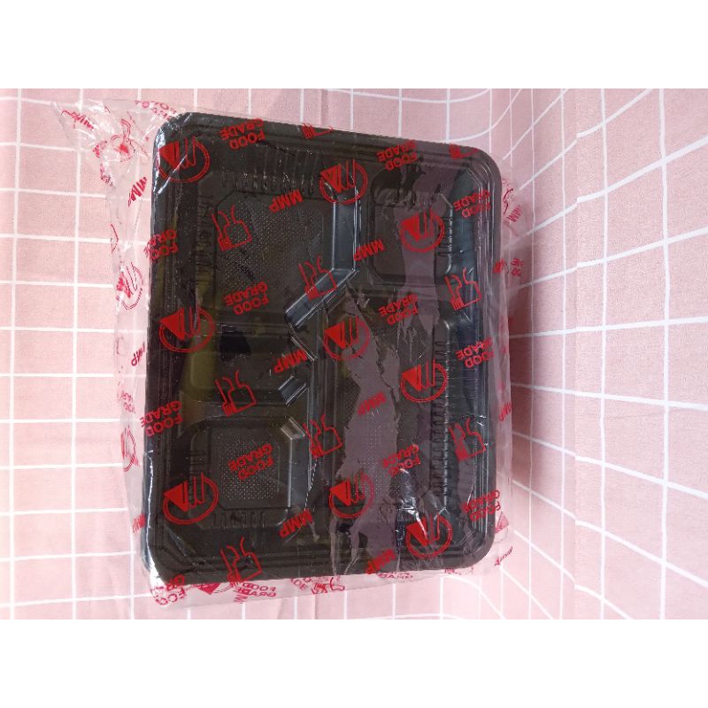 10pcs Mika Bento 5 Sekat - Hitam Ukuran Jumbo Besar / Kotak Makan Lunch Box