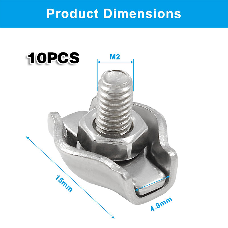 10pcs Pengait Kawat Seling Stainless Penjepit Seling Wire Rope Clip Baja Kabel Seling Sling M2