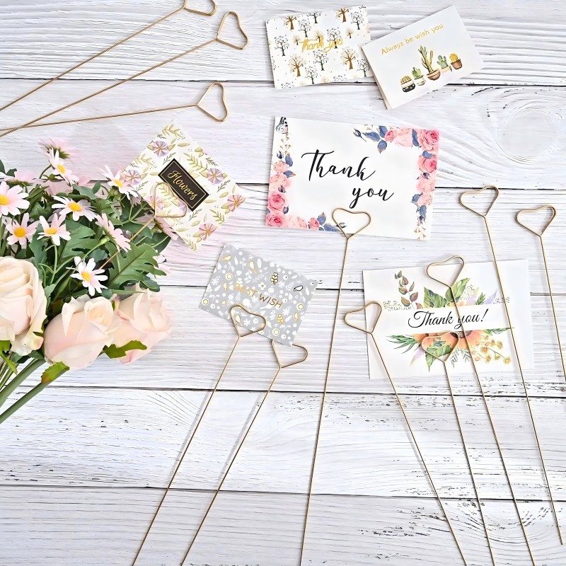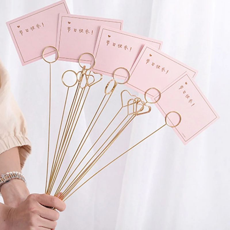 10pcs Stick Card Holder Stick Greeting Card Stick Kartu Ucapan Buket Stick Gold Bulat Kartu Ucapan