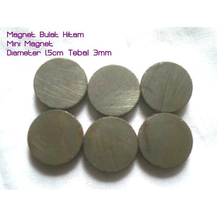 10pcs Supplier Grosir Magnet Bulat Kecil Mini Magnet Hitam black Circle D 1,5cm tebal 3mm Kerajinan