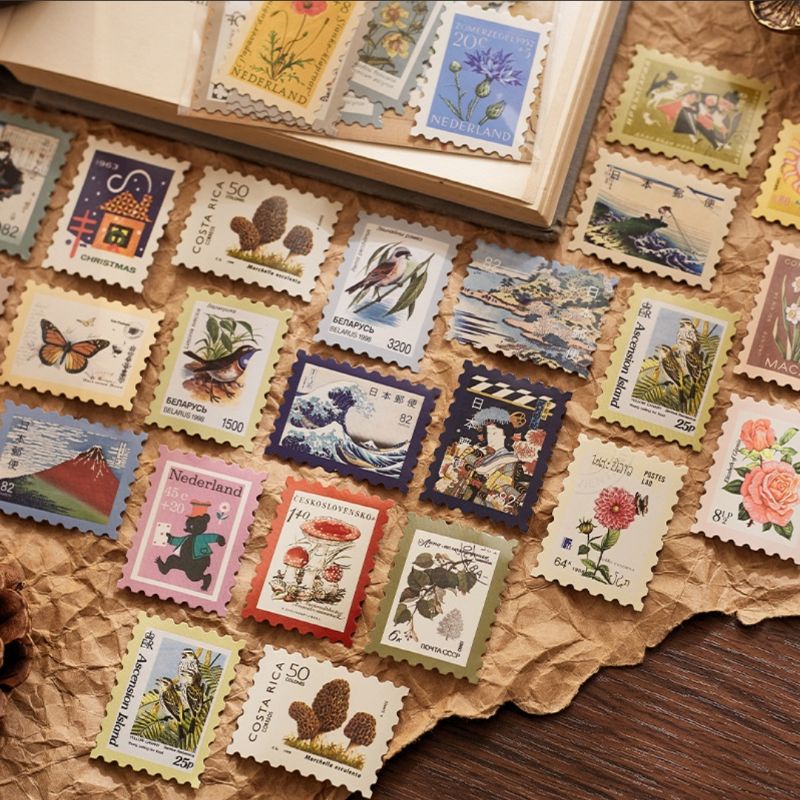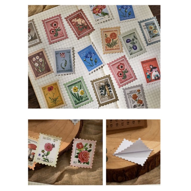 10pcs stiker model prangko - sticker vintage prangko - sticker aesthetic - stiker bullet journal diary scrapbook - deco sticker