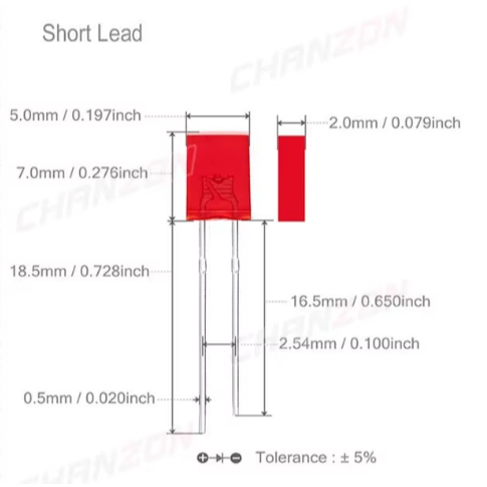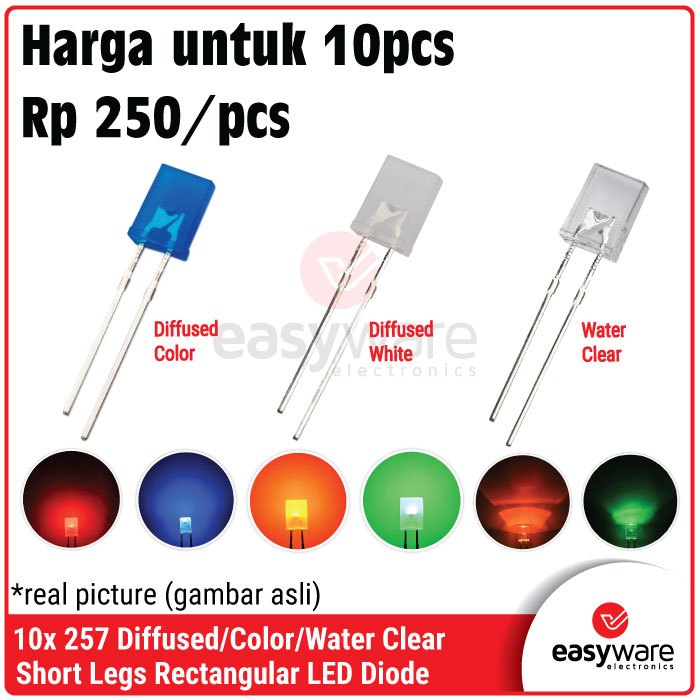 10x LED 2x5x7mm Rectangular LED 257 White Red Green Blue Yellow Orange Clear Diffused Color Square LED 2x5x7 Kotak