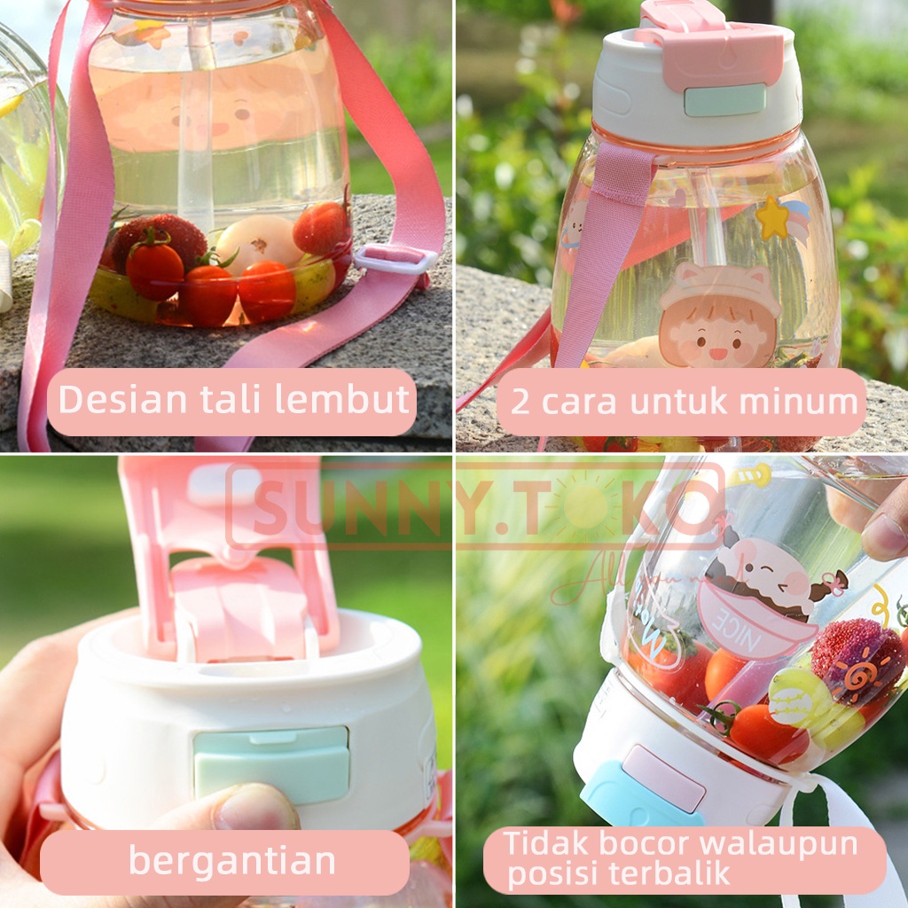 1100/1300ML Botol Minum motivasi gratis stiker botol air minum anak plastik lucu cangkir kartun portabel stiker Big Belly Bottle