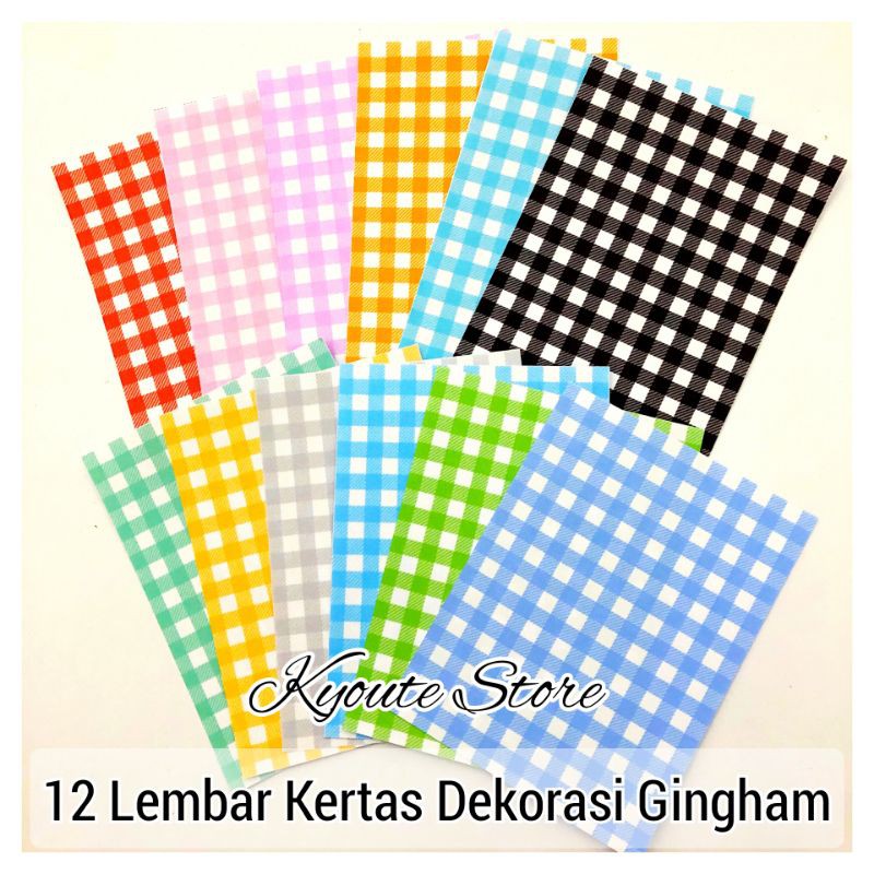 12 Lembar Kertas Hias Motif Gingham Kotak Warna Dekorasi Scrapbook DIY Jurnal Surat Letter