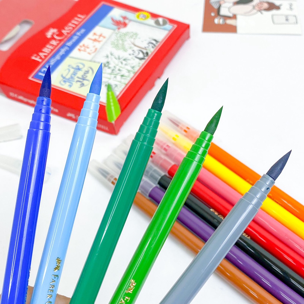 12 PCS BRUSH PEN SPIDOL KUAS FABER CASTELL CALLIGRAPHY / SPIDOL KALIGRAFI WARNA WARNI BISA COD