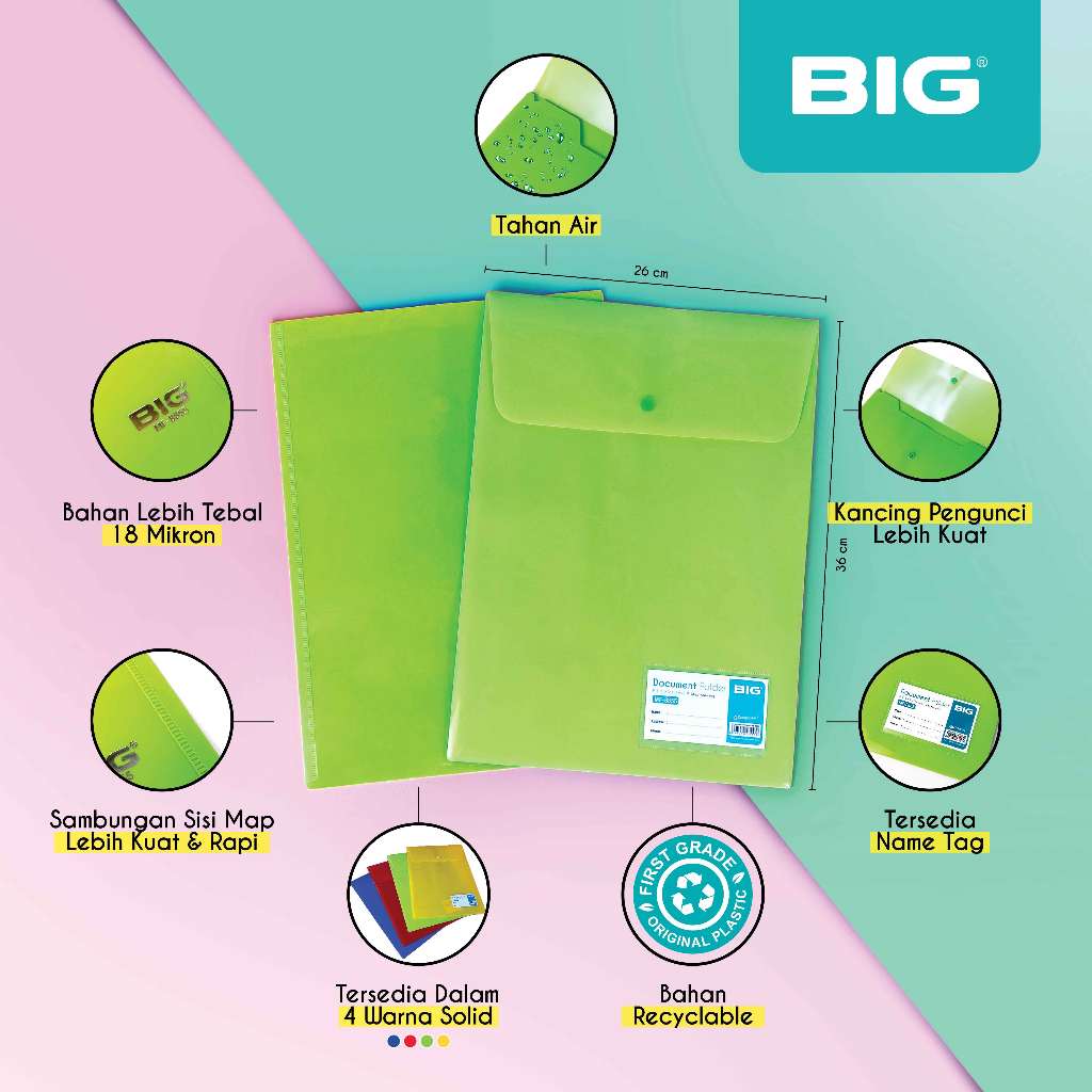 12 PCs BIG Map Kancing 1 Pastel/ Map Dokumen Kancing 1 Pastel F4 Vertikal Tegak MF-8855